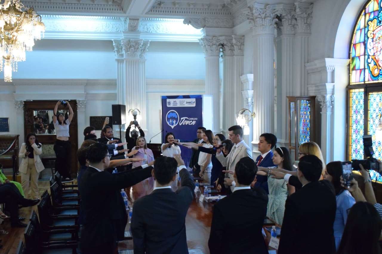 Chihuahua.- En el marco del Mes de la Juventud, el Alcalde de Chihuahua, Marco Bonilla, presidió la sesión solemne en la que 23 jóvenes asumieron su lugar en el Cabildo Joven 2025, un programa del Ayuntamiento que busca formar a las nuevas generaciones en liderazgo, comunicación, oratoria, imagen pública, marketing político y democracia.