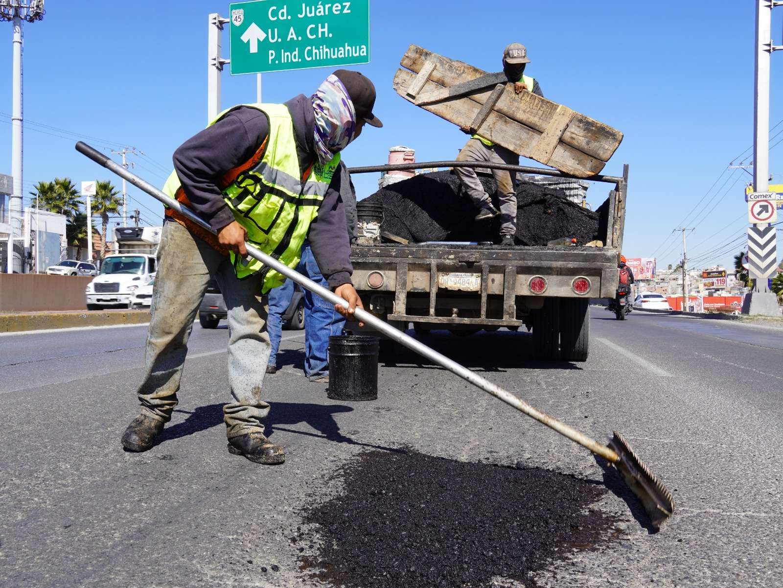 Chihuahua. - El Gobierno Municipal a través de la Dirección de Obras Públicas, atendió mediante el programa emergente de bacheo, mil 243 baches en el periodo del 3 al 6 de febrero.
