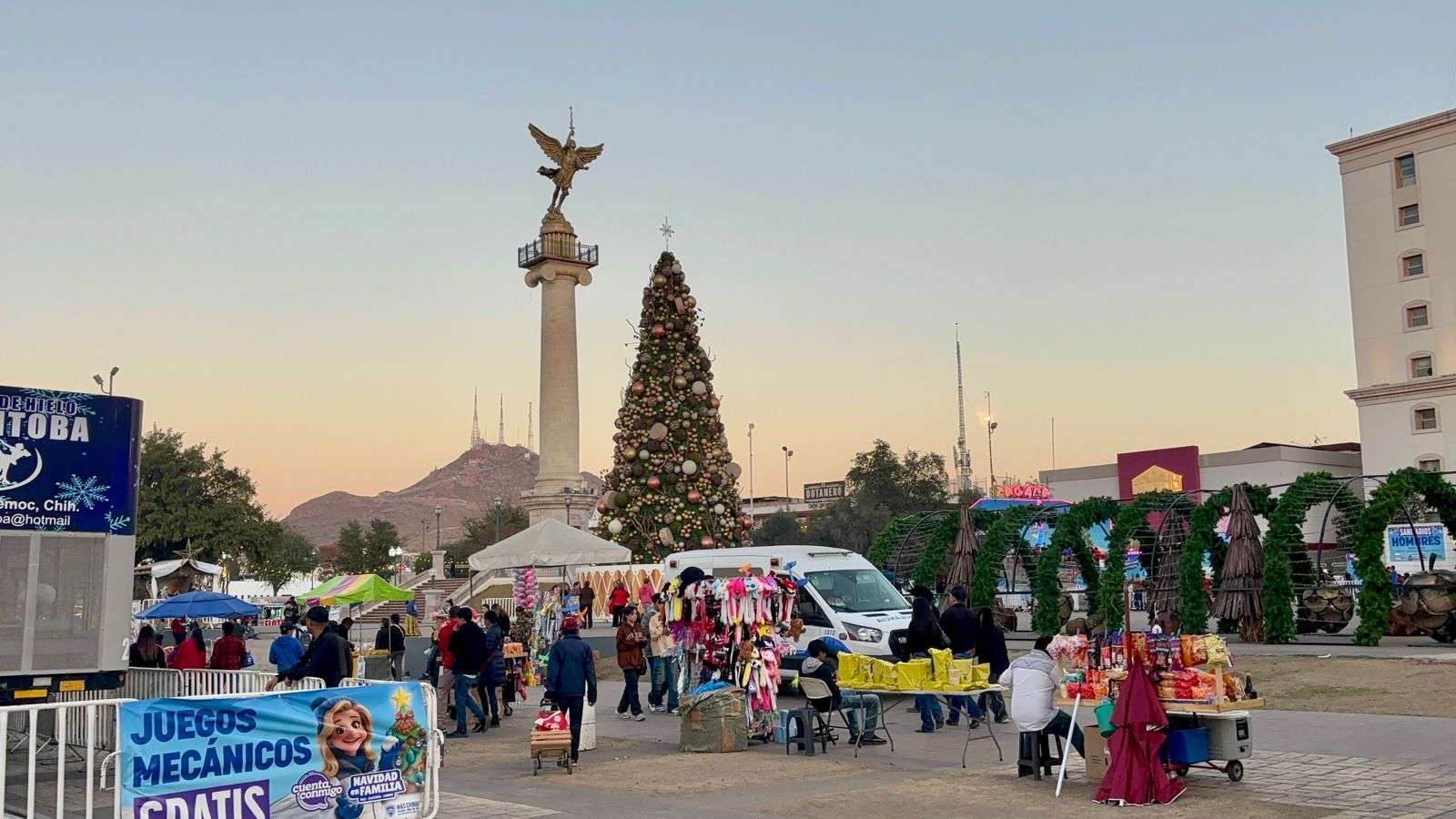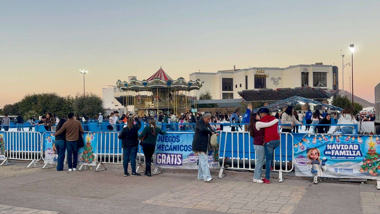 Chihuahua, Chih.– A unos días de que inicie el periodo vacacional de Navidad, ha aumentado la afluencia de familias chihuahuenses a las atracciones instaladas en la Plaza Mayor.