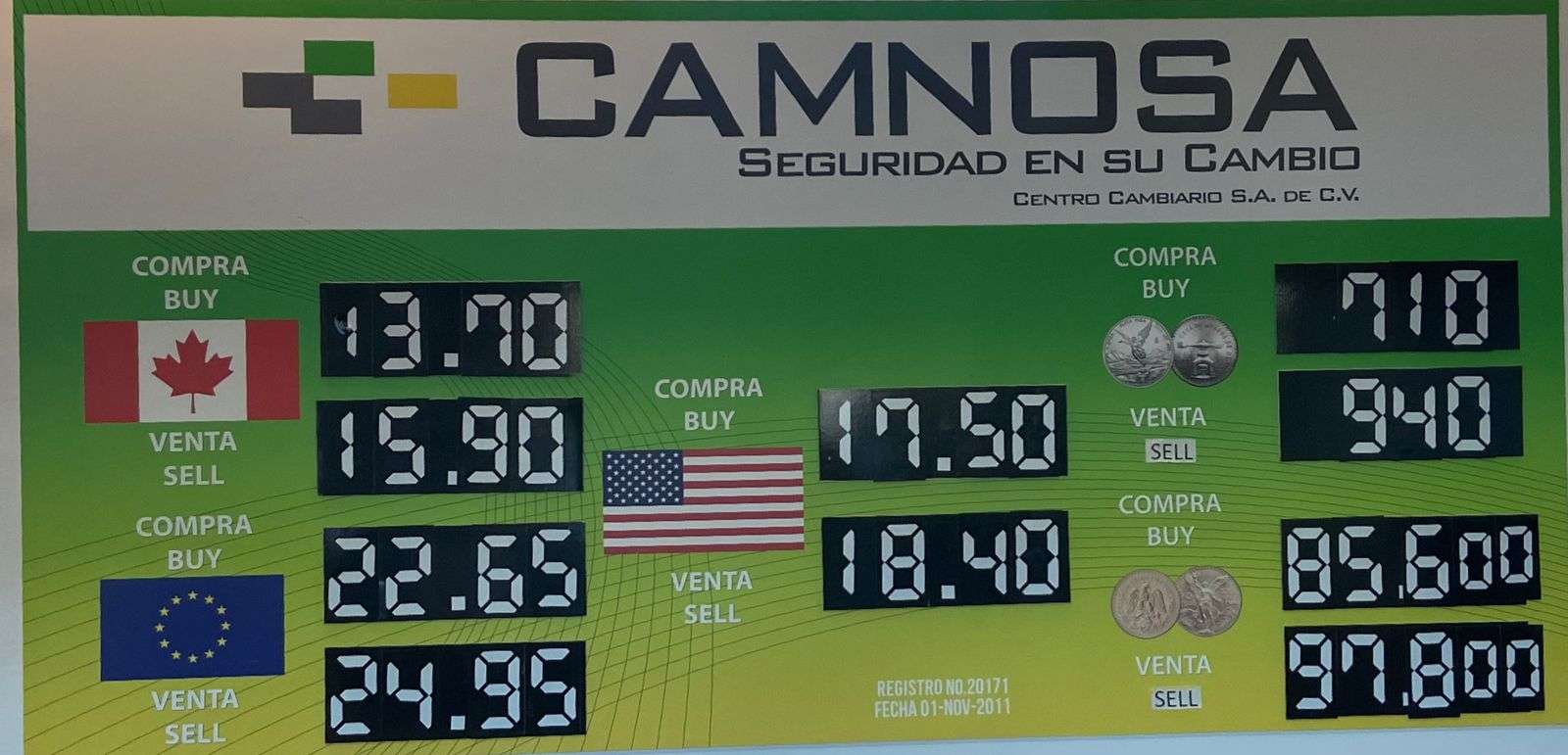 En la casa de cambio Camnosa, ubicada en la calle Aldama, casi esquina con Ocampo, el dólar estadounidense se ofreció a la venta en $18.40 y a la compra en $17.50.