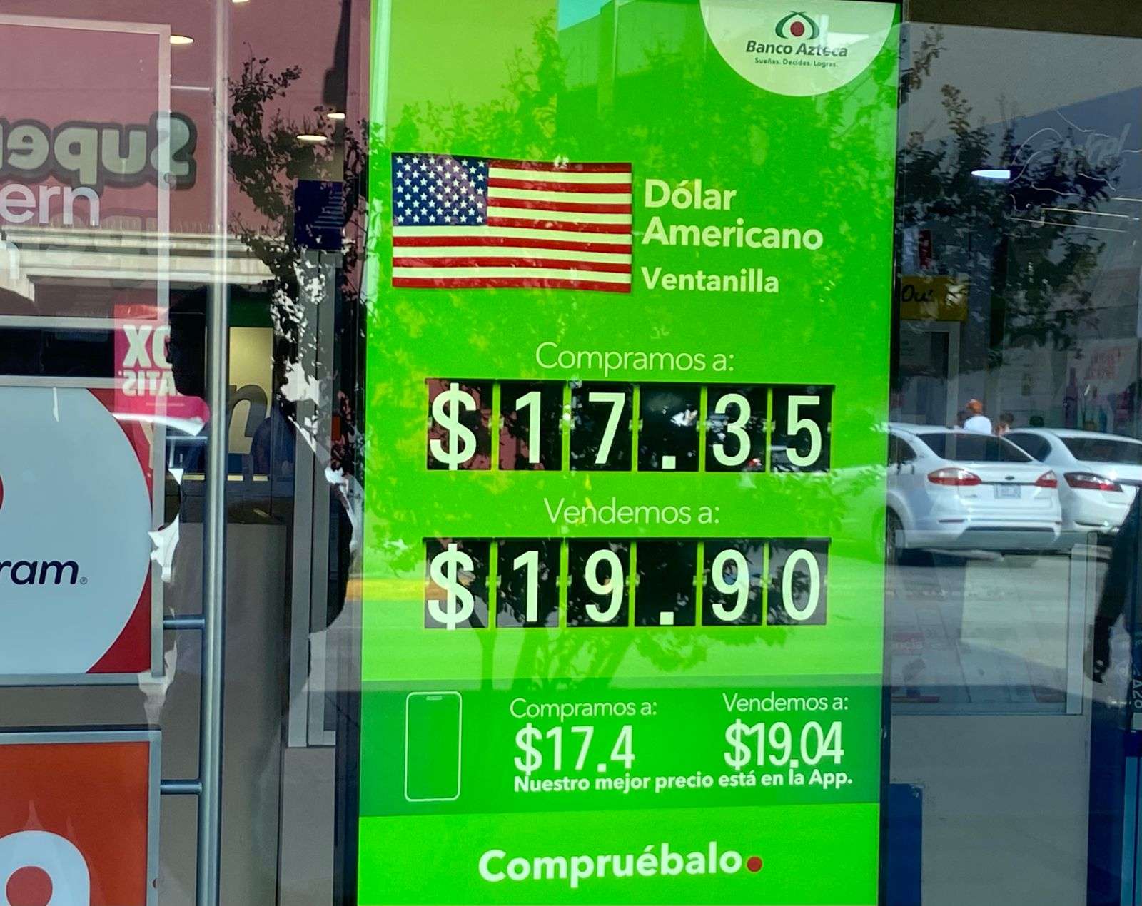 Chihuahua.- La cotización del dólar este viernes 17 de octubre cotizó a $19.90 a la venta y $17.35 a la compra en ventanillas de Banco Azteca, ubicado en la calle Cuarta y Aldama.