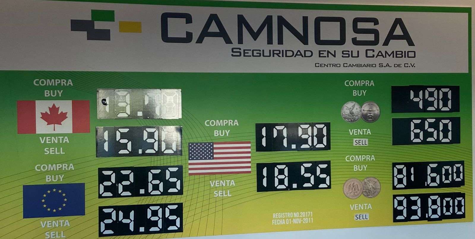 En la casa de cambio Camnosa, ubicada en la calle Aldama casi esquina con Ocampo, el dólar se ofreció a la venta en $18.55 y a la compra en $17.90.