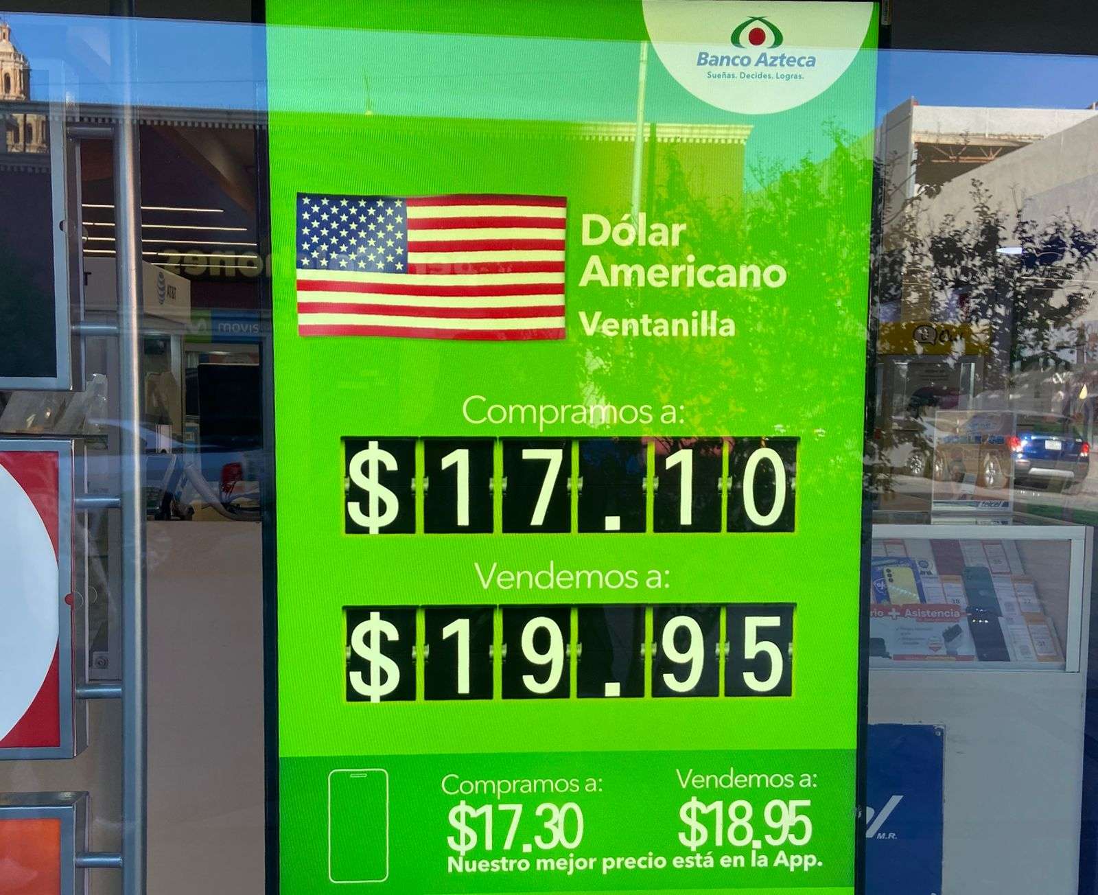 Chihuahua.- El dólar se cotizó este sábado 8 de noviembre en $19.95 a la venta y $17.10 a la compra en ventanillas de Banco Azteca, ubicado en la calle Cuarta y Aldama, por lo que la cotización a la venta registró una ligera disminución.