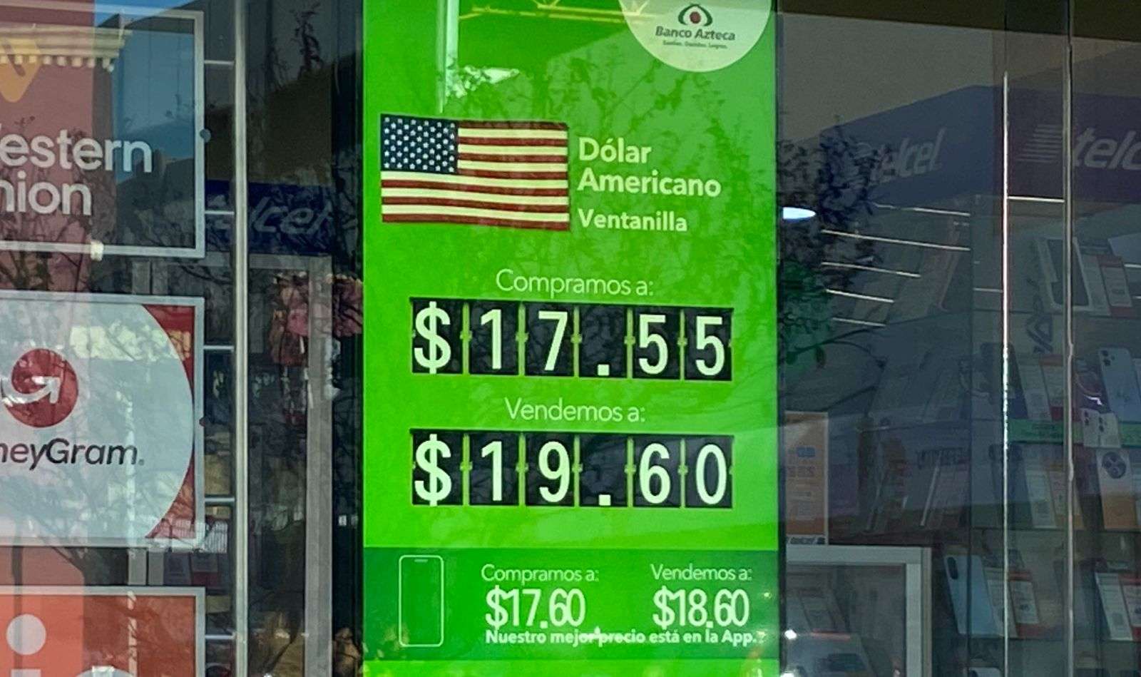 Chihuahua.- El dólar estadounidense para este viernes 19 de diciembre cotizó a $19.60 a la venta y a $17.55 a la compra en ventanillas del Banco Azteca, ubicado en la calle Cuarta y Aldama.