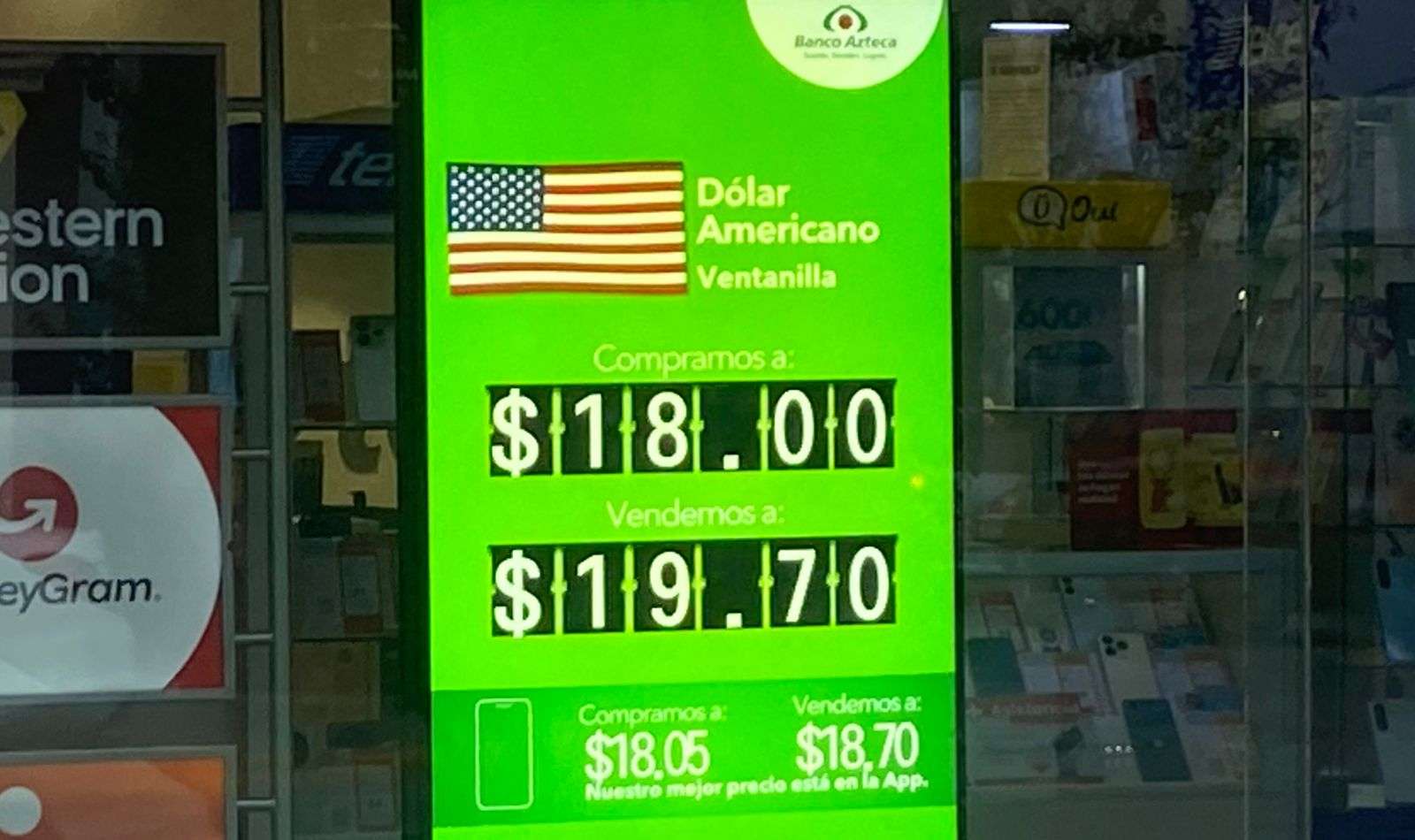 Chihuahua.- El dólar americano para este viernes 5 de diciembre cotizó a $19.70 a la venta y a $18.00 a la compra en las ventanillas del Banco Azteca, ubicadas en la calle Cuarta y Aldama.
