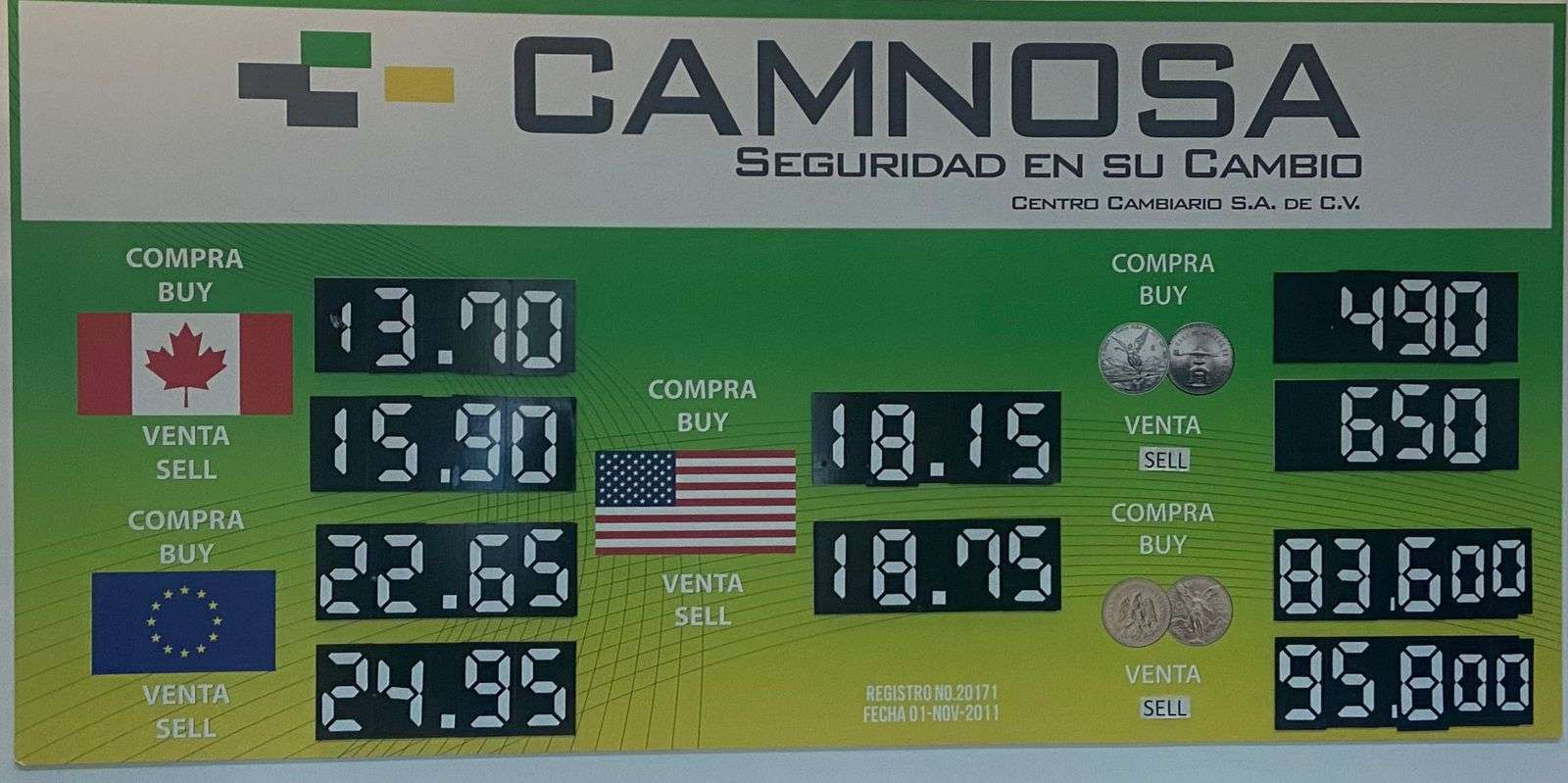 En la casa de cambio Camnosa, ubicada en la calle Aldama, casi esquina con Ocampo, el dólar americano se ofreció a la venta en $18.75 y a la compra en $18.15.