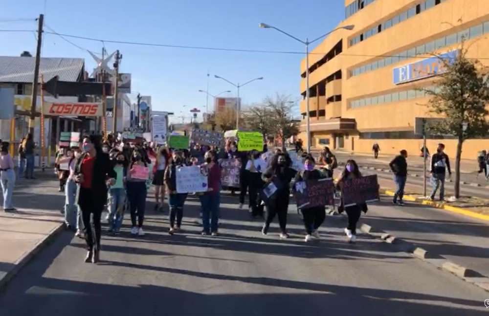 Entre las demandas que se escuchan en alta voz, las mujeres dicen: "Las niñas no se tocan", y “Mamá, esucha, tu hija está en la lucha”.