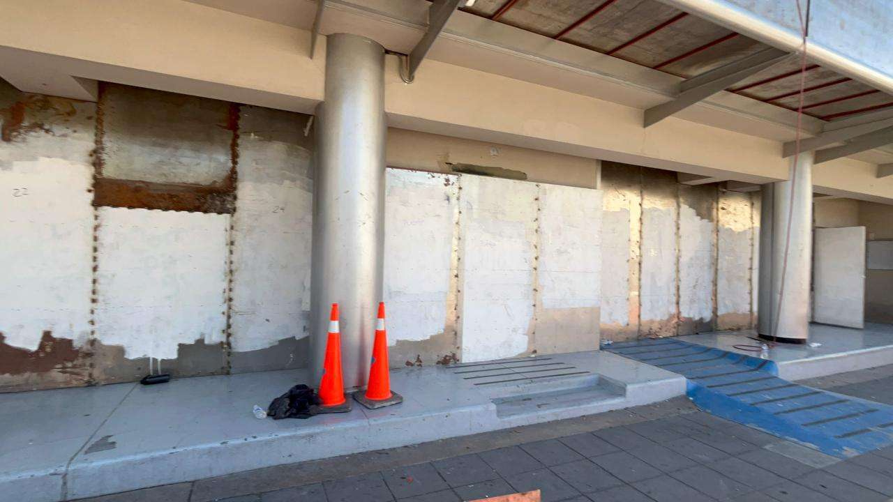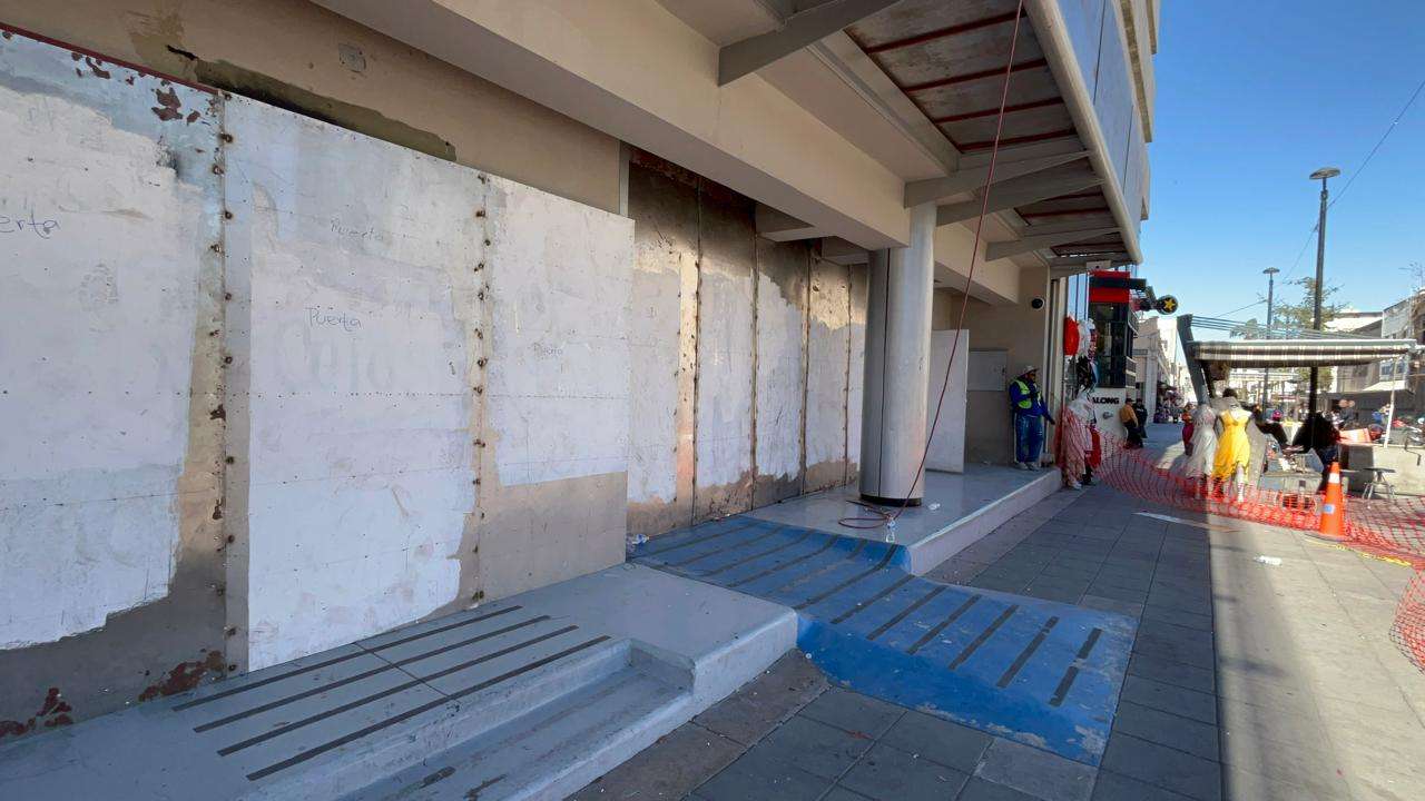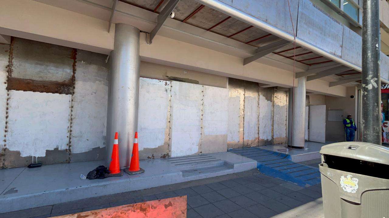 Desde temprana hora, brigadas de mantenimiento comenzaron con la instalación de placas metálicas que cubren por completo la fachada de cristal que da hacia la Plaza de Armas.