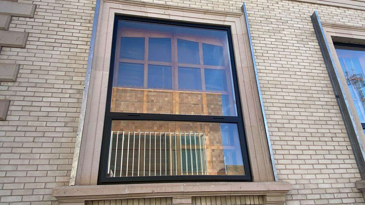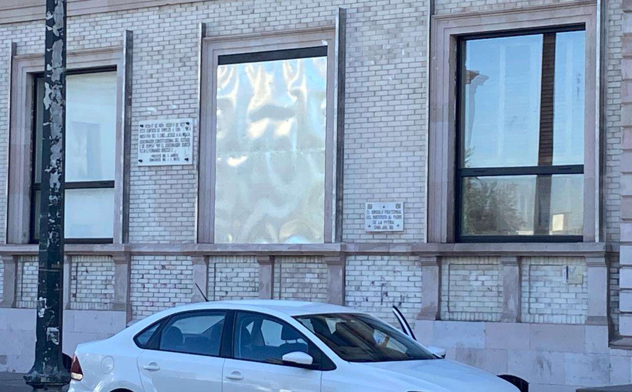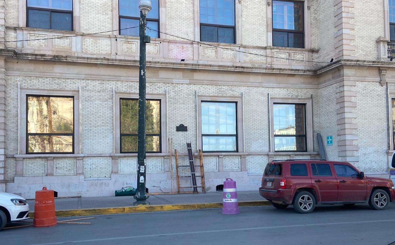 Chihuahua.- El edificio de Rectoría de la Uach, está siendo resguardado con placas de acero en las ventanas y puertas del emblemático edificio esto como manera de prevención ante la marcha del próximo 8 de marzo.