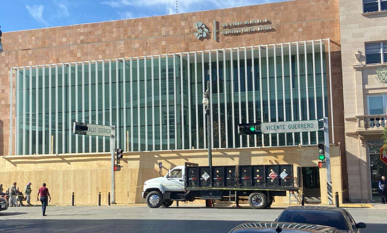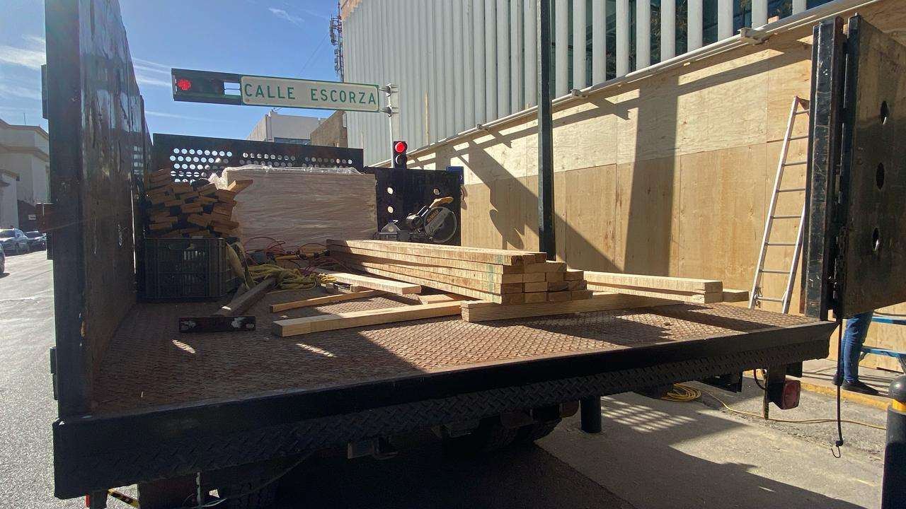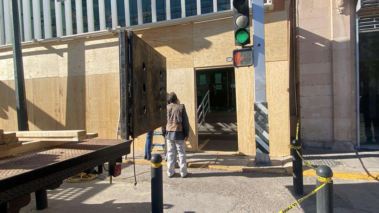 Asimismo, el edificio del Registro Público de la Propiedad se colocó una protección de madera que cubre toda la fachada del edificio, donde también estarán colocando algunas placas de acero para evitar posibles riesgos.
