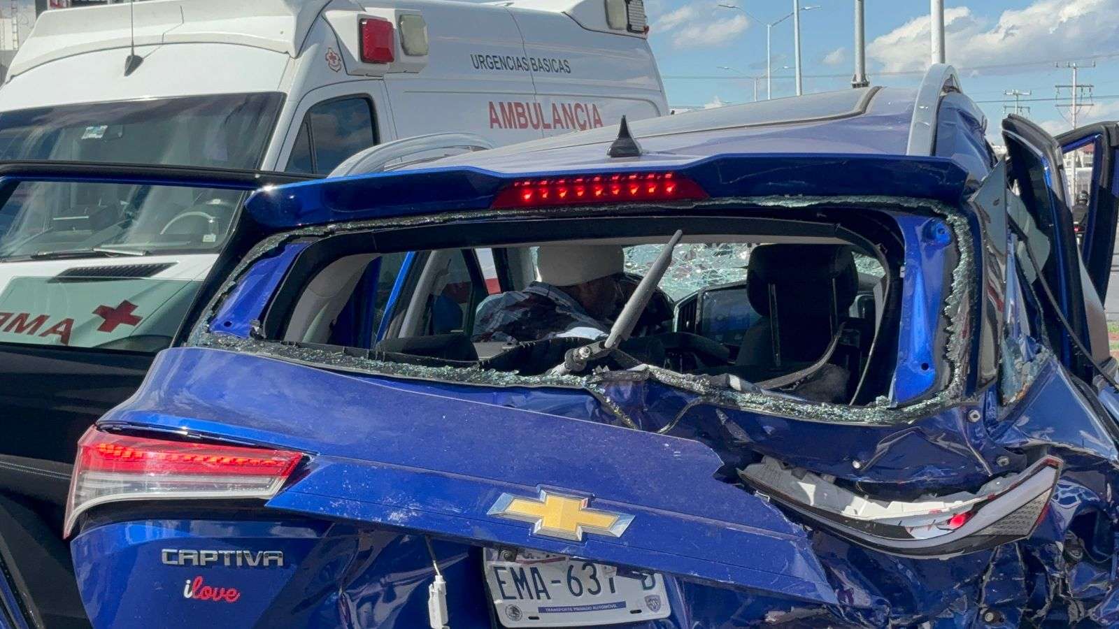 Chihuahua.- El conductor de una camioneta Captiva que circulaba de sur norte, perdió el control y se impactó de frente contra un Tida y un Spark, quedando atrapado el hombre en su camioneta.
