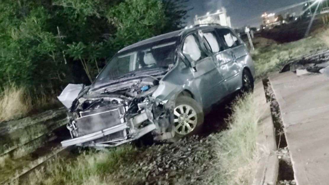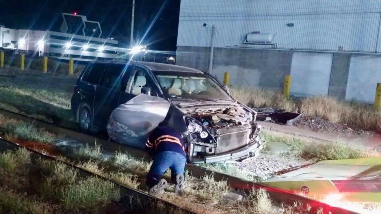 Chihuahua. - Un accidente vial se registró en el cruce de la calle Mercurio y Vías del Ferrocarril, en la colonia Nombre de Dios, luego de que la conductora de una camioneta intentara ganarle el paso al tren la noche de ayer sábado 25 de abril.