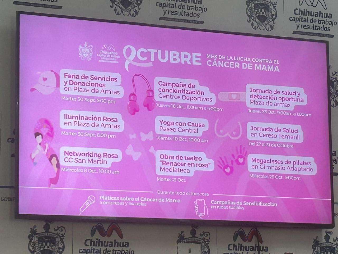Como cada 19 de octubre se conmemora el Día Mundial de la Lucha contra el Cáncer de Mama, el municipio de Chihuahua busca sensibilizar a la población sobre la importancia de la detección temprana, con el fin de mejorar el pronóstico y la supervivencia de los casos.
