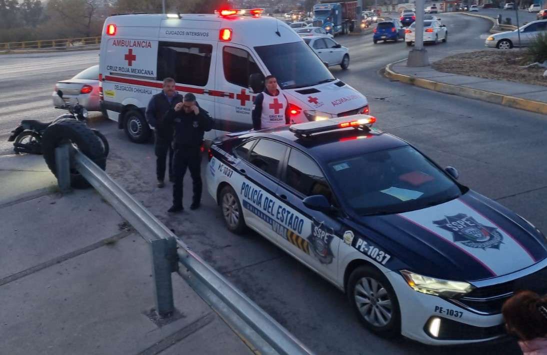 Chihuahua.- Un hombre de aproximadamente 50 años resultó con varios golpes luego de caer de su motocicleta al derrapar, en un incidente ocurrido en el cruce de la calle Yucatán y la vialidad Sacramento.