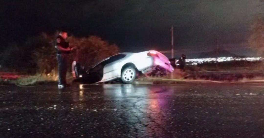 Chihuahua.- Una pareja de adultos mayores se accidentaron al caer a un camellón a desnivel luego de la tormenta que azotó en la ciudad.