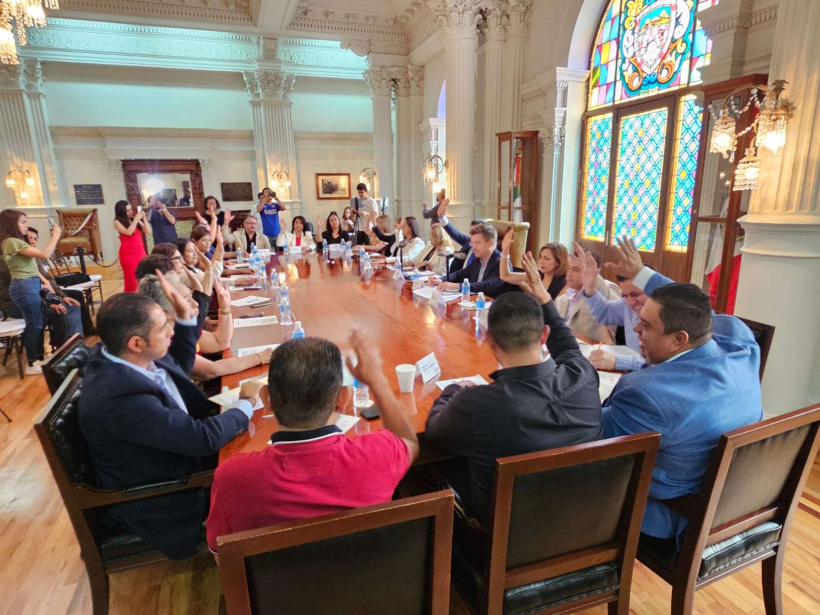 Esta tarde se llevó a cabo una sesión extraordinaria en el salón de cabildos del palacio municipal, donde el alcalde, en compañía de los regidores, votaron a favor tras un dictamen que presentó la comisión de regidores Hacienda y Planeación, de la voz del regidor Luis Villegas.