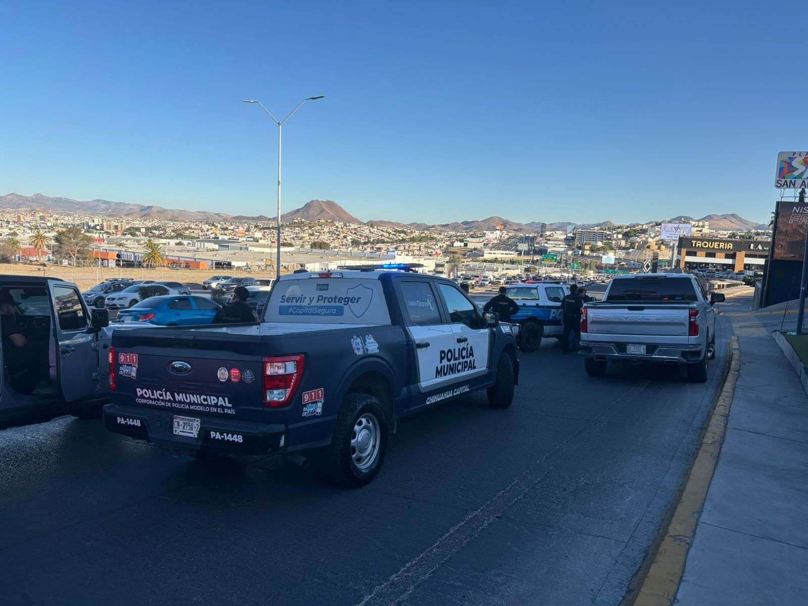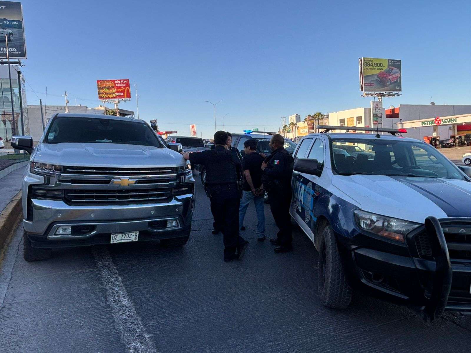Chihuahua, Chih.- Una intensa persecución policiaca se generó tras el reporte de robo con violencia de una camioneta Chevrolet Silverado en la avenida Homero.