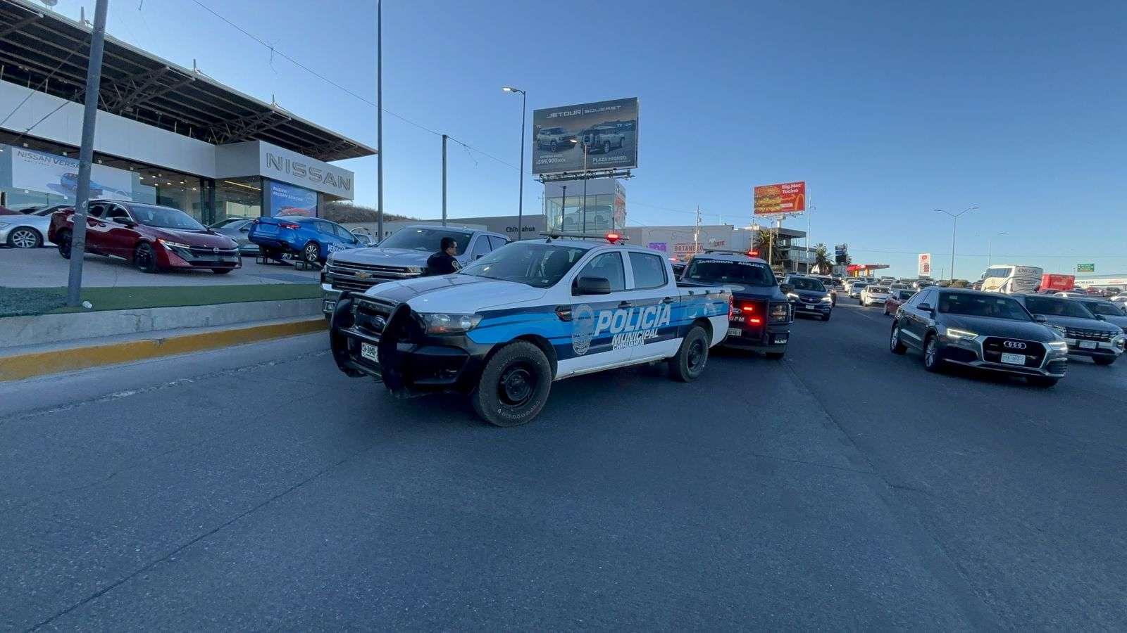 A esto se sumó la inmediata respuesta de los agentes municipales, quienes, apoyados por las cámaras de la plataforma Escudo Chihuahua (PECUU), en ningún momento perdieron de vista la unidad con reporte de robo mientras circulaba por el sector norte de la ciudad.