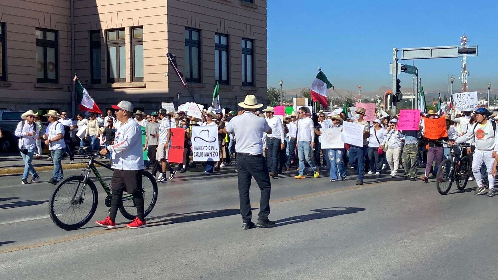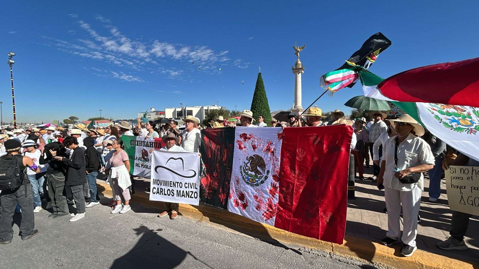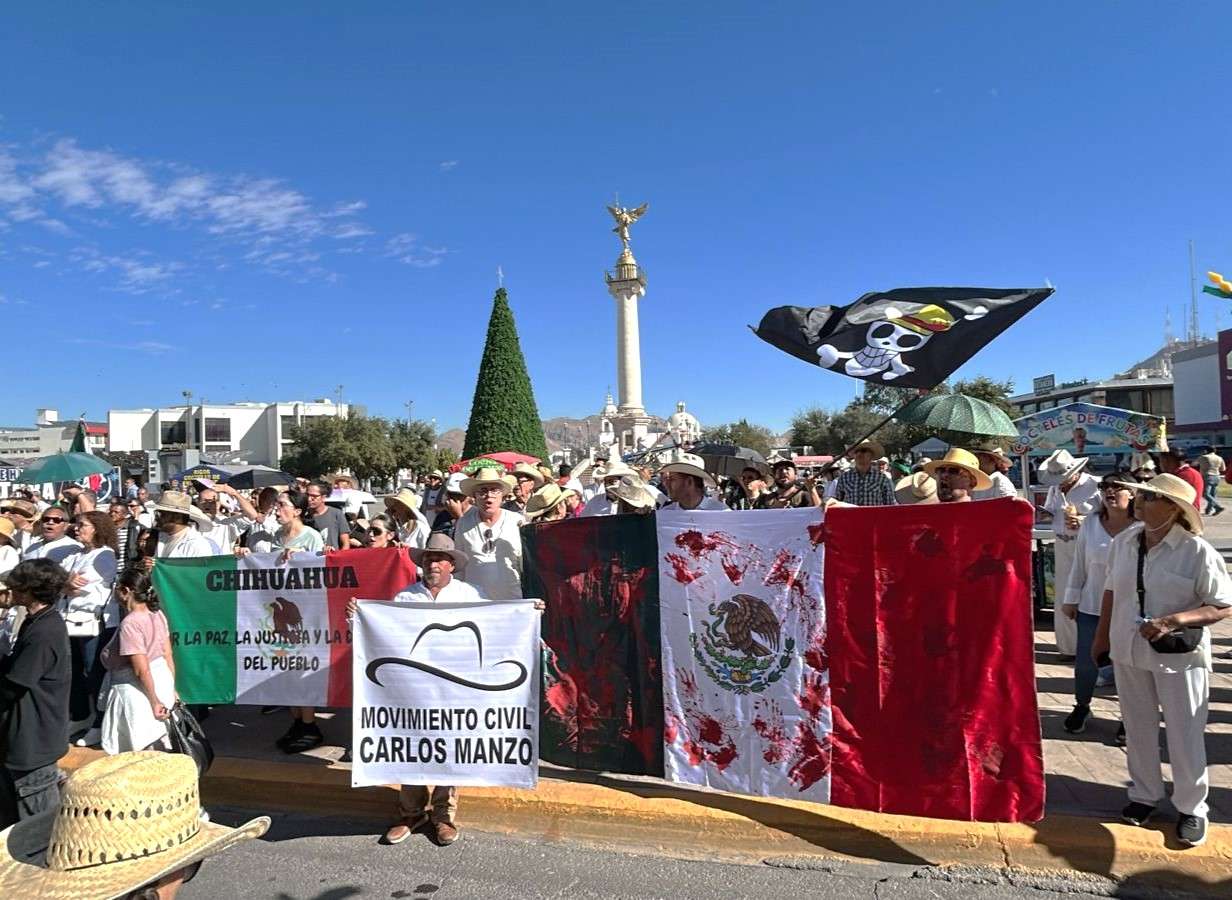 Chihuahua.- El contingente de manifestantes del Movimiento Civil Carlos Manzo arribó a la Plaza del Ángel después de ser convocado a una marcha a las 10:00 de la mañana.