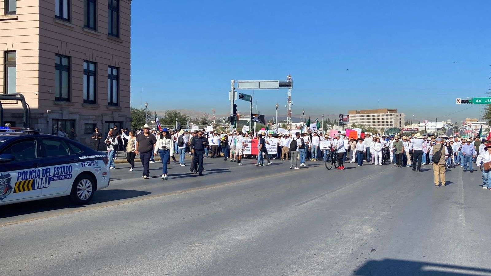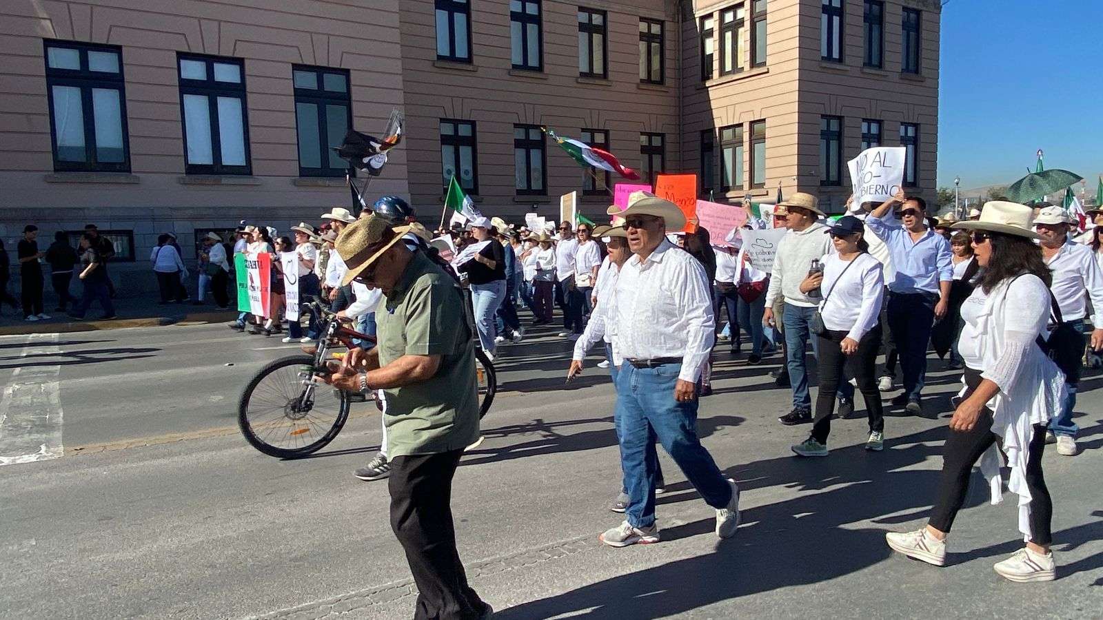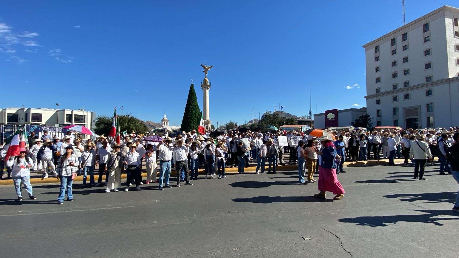 Chihuahua.- El contingente de manifestantes del Movimiento Civil Carlos Manzo arribó a la Plaza del Ángel después de ser convocado a una marcha a las 10:00 de la mañana.