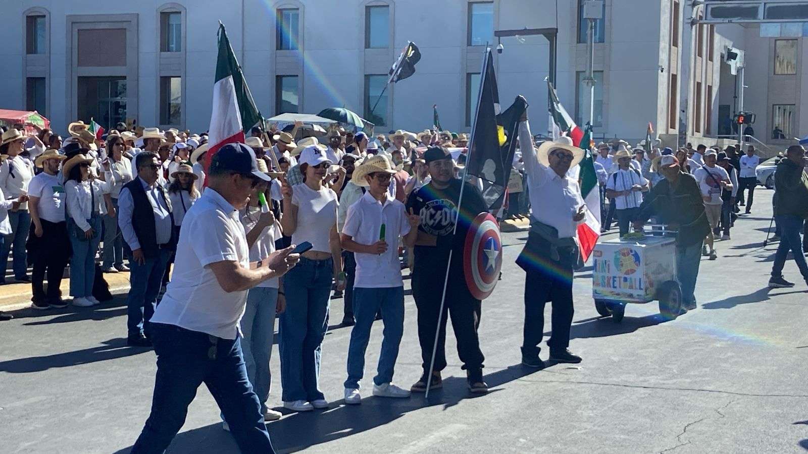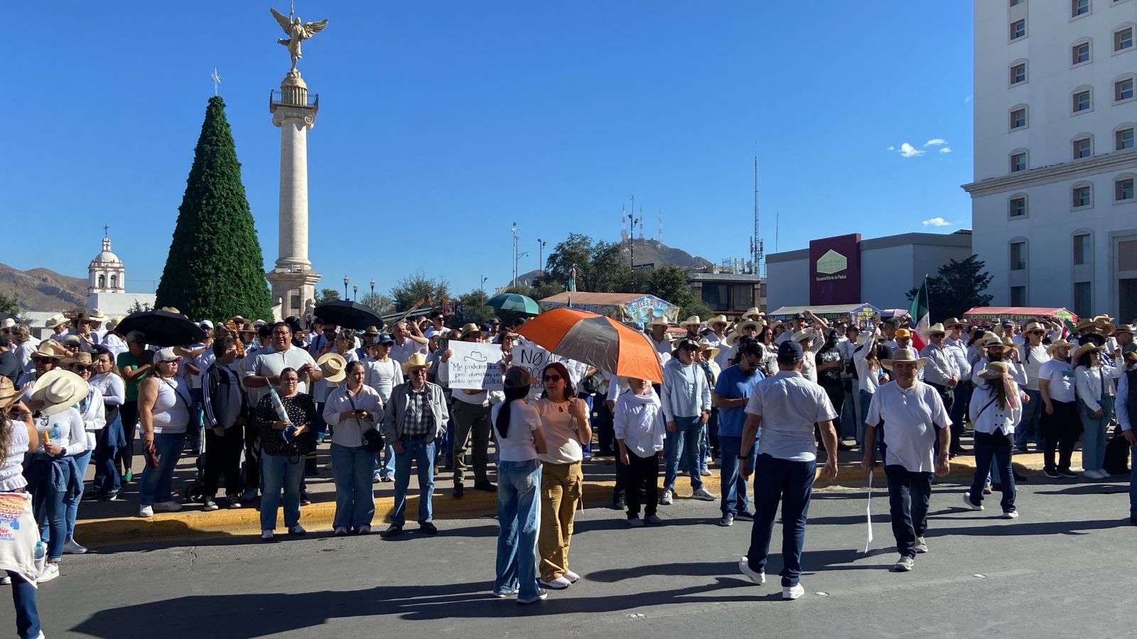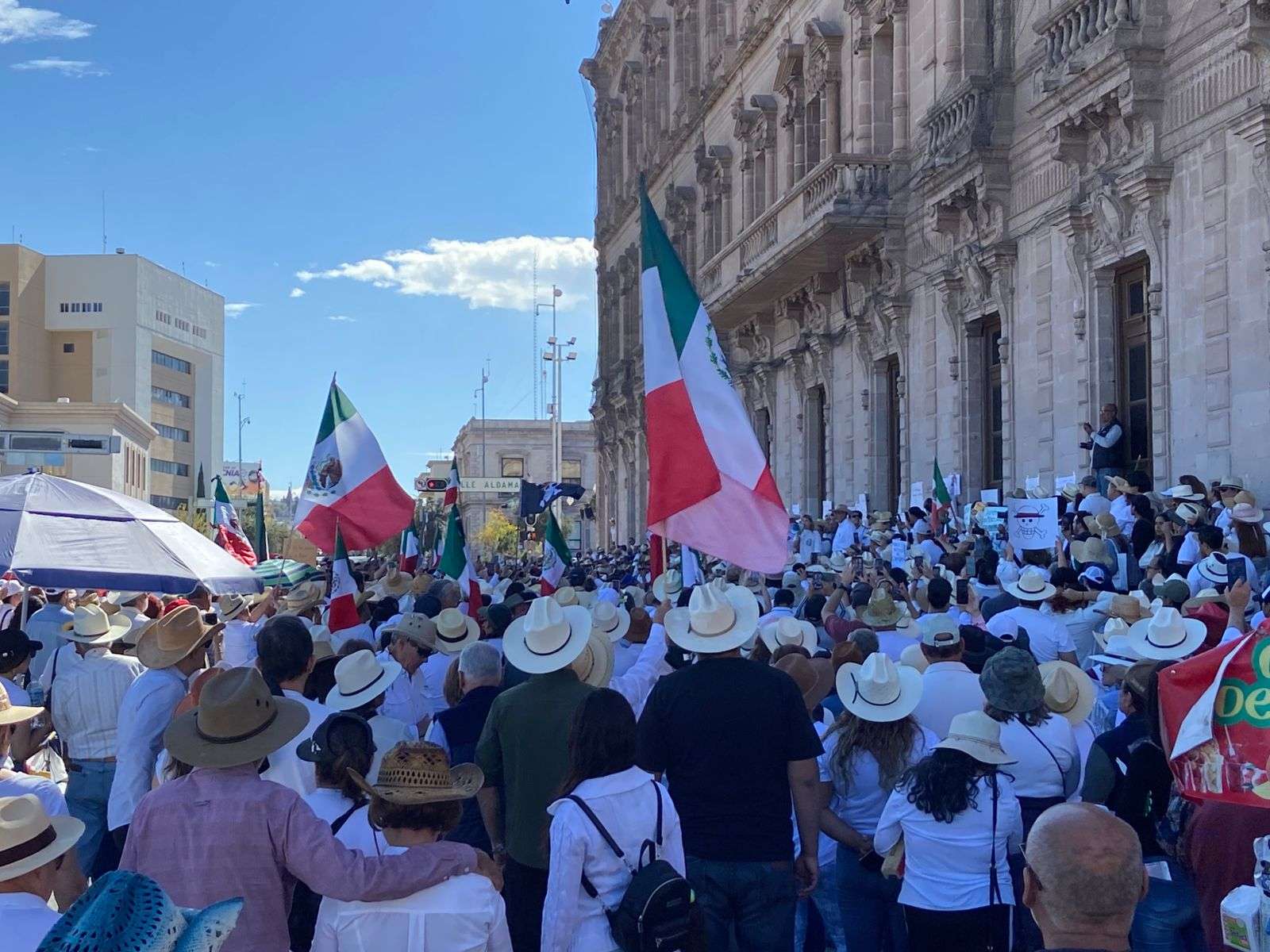 Se trata de un contingente de cerca de 300 personas que marchó desde la Glorieta de Pancho Villa hasta la plancha de la Plaza del Ángel, donde, con pancartas, banderas, sombreros y consignas, exigen la destitución de Claudia Sheinbaum.