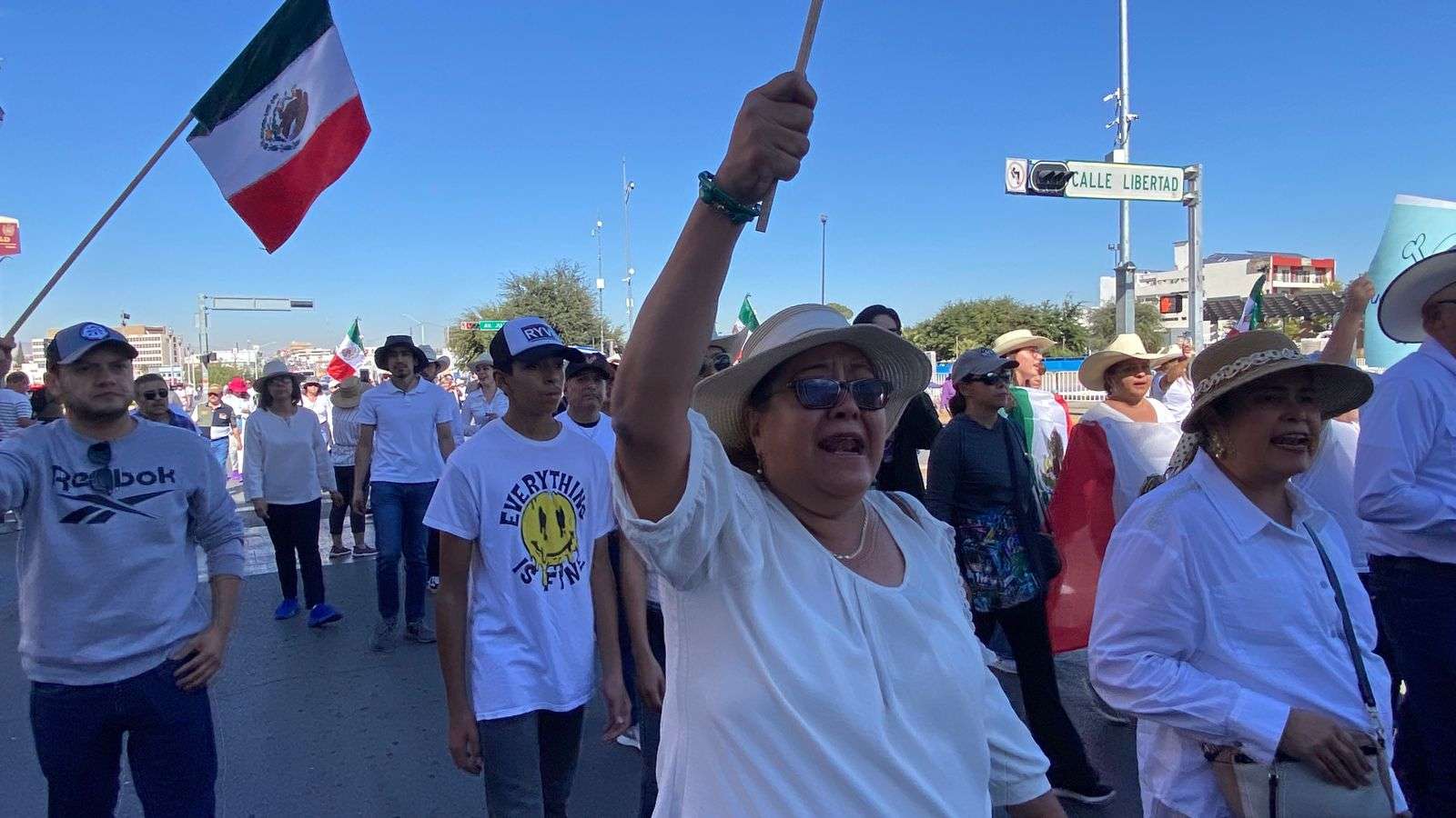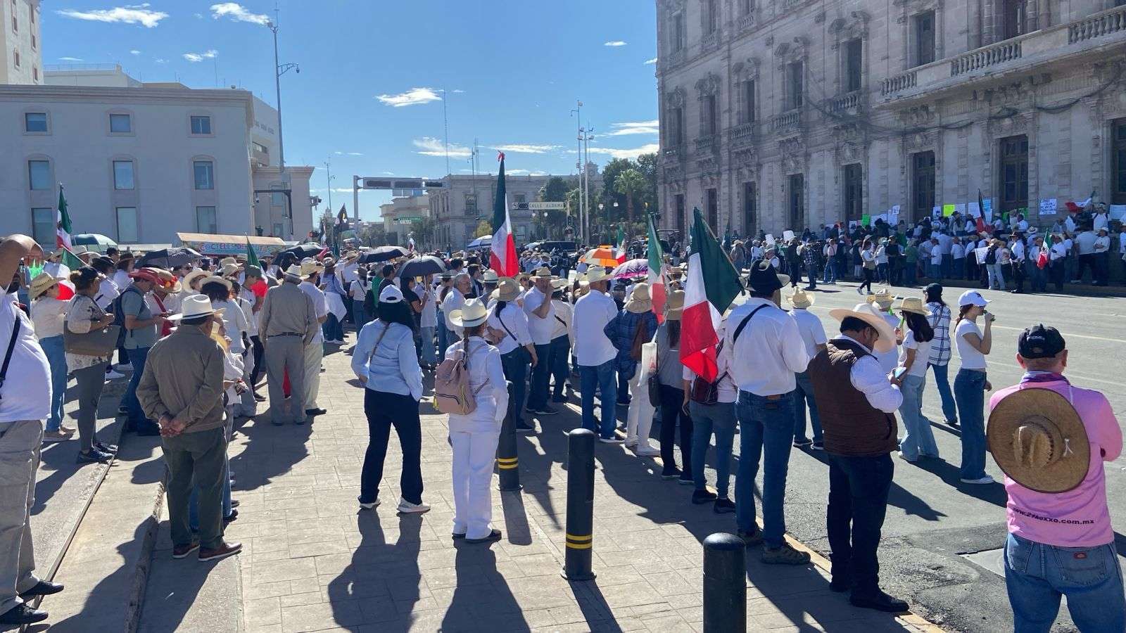 Tras el arribo de este segundo contingente, fueron más de 700 personas las que se congregaron en la Plaza del Ángel, donde al unísono entonaron el Himno Nacional.