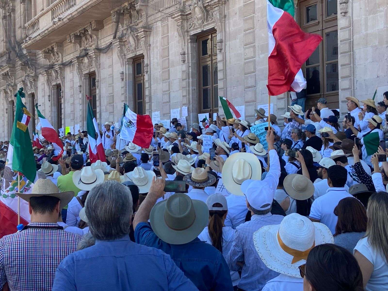Además, un contingente de poco más de 200 personas de la agrupación México Se Levanta se unió a la primera manifestación en la Plaza del Ángel, donde exigieron que el Gobierno Federal se ponga a trabajar.