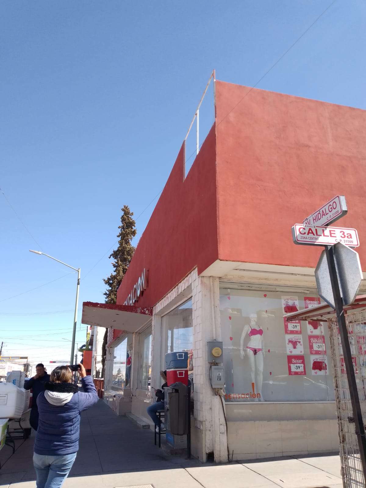 12:03 horas, Hidalgo y Tercera, tienda Sensación. Espectacular a punto de colapsar. La encargada de la tienda informó que ya se están haciendo cargo de la reparación de la estructura.
