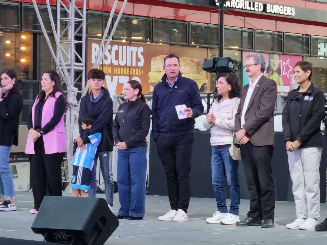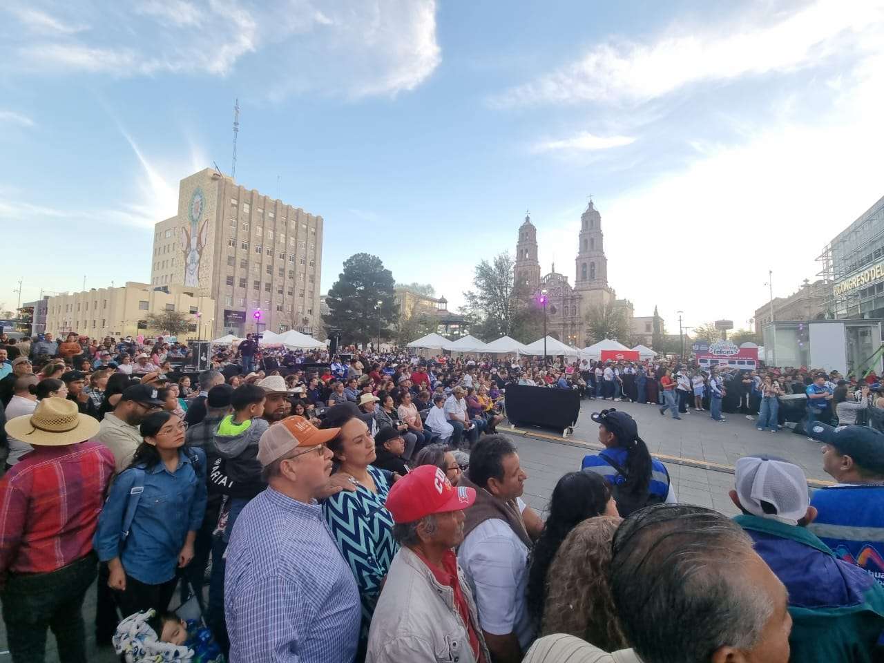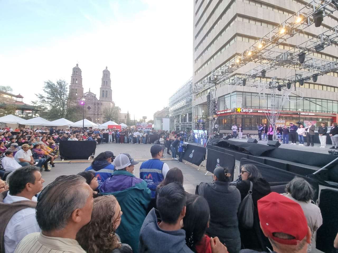 Chihuahua.- Esta tarde el alcalde Marco Bonilla acompañado de su esposa Karina Olivas y autoridades municipales y estatales, estuvieron presentes en el "Festival de familias felices" en la Plaza de Armas.