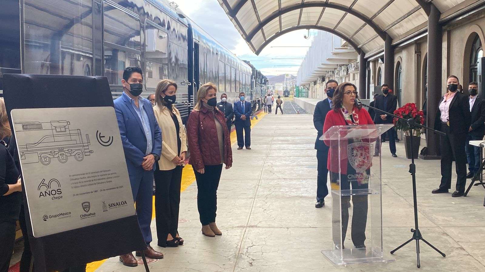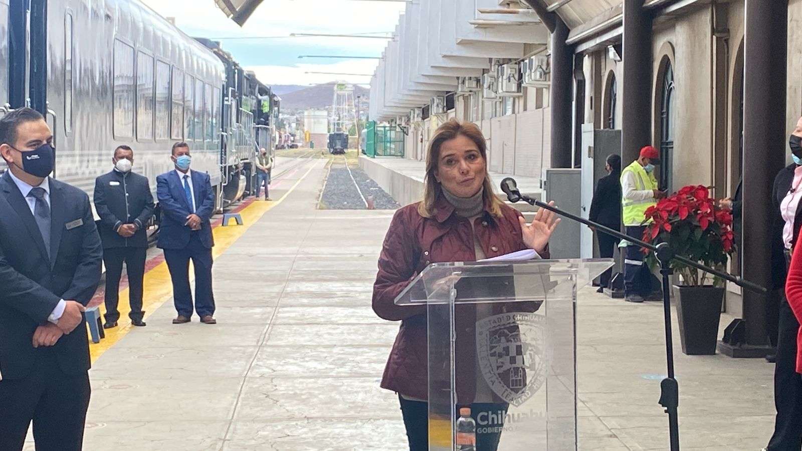 En un evento protocolario en la Estación Chihuahua, de la colonia Pacifico, la mandataria estatal señaló que el tren genera una derrama económica de $900 millones de pesos por año.