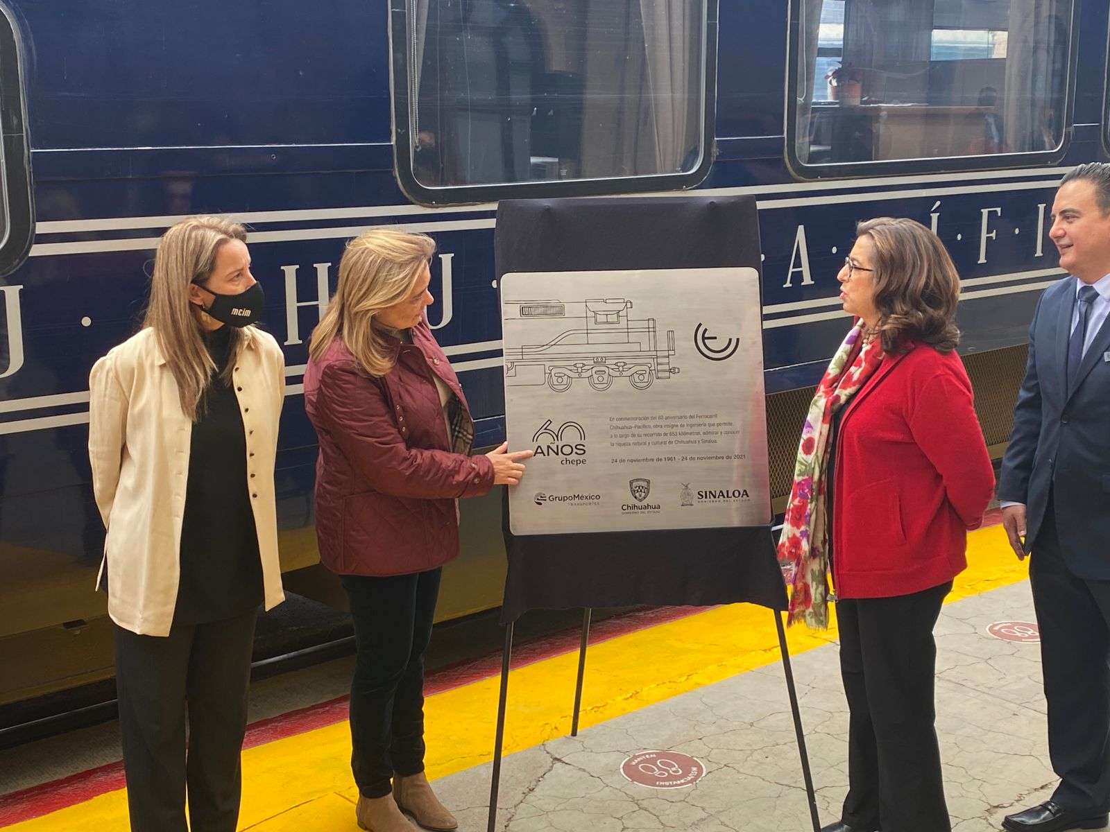 Chihuahua.- La Gobernadora del Estado, María Eugenia Campos Galván, autoridades del Grupo México y Ferromex, conmemoraron el 60 aniversario del Tren CHEPE.