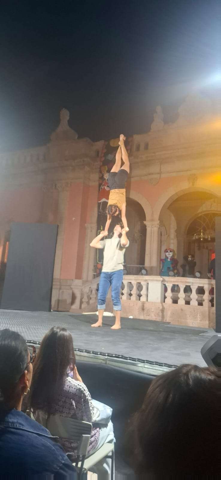 Ante un lleno total, los patios de la Quinta Carolina se estremecieron ante las formas versátiles que se fueron transformando de un espectáculo de circo a un espectáculo de amor y guerra, de lucha y desamor, de dignidad y lucha social global, de concordia y paz.
