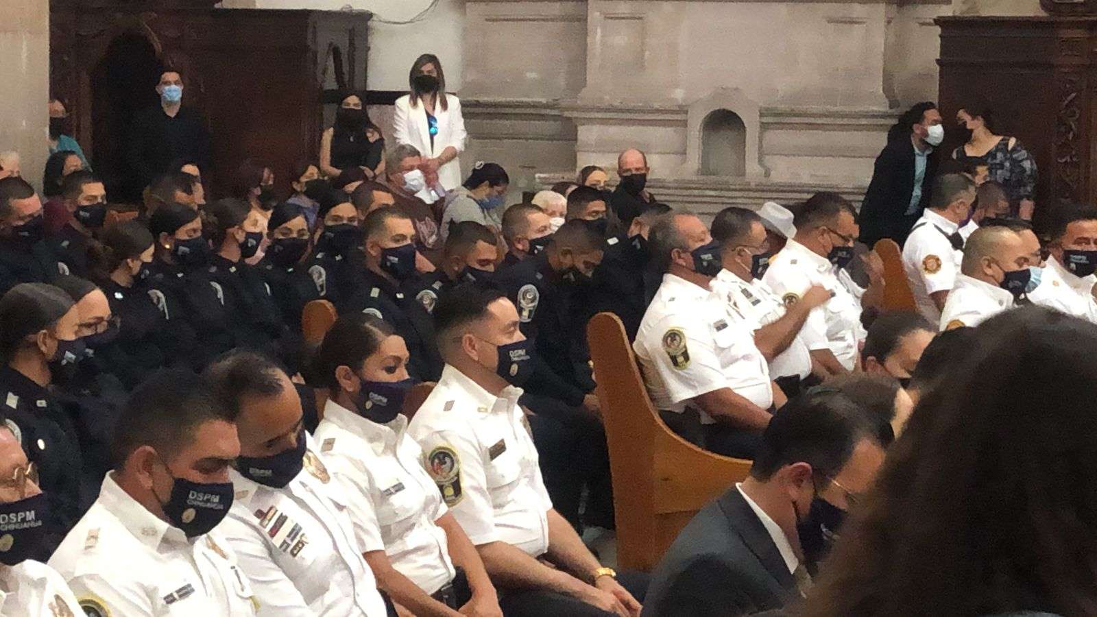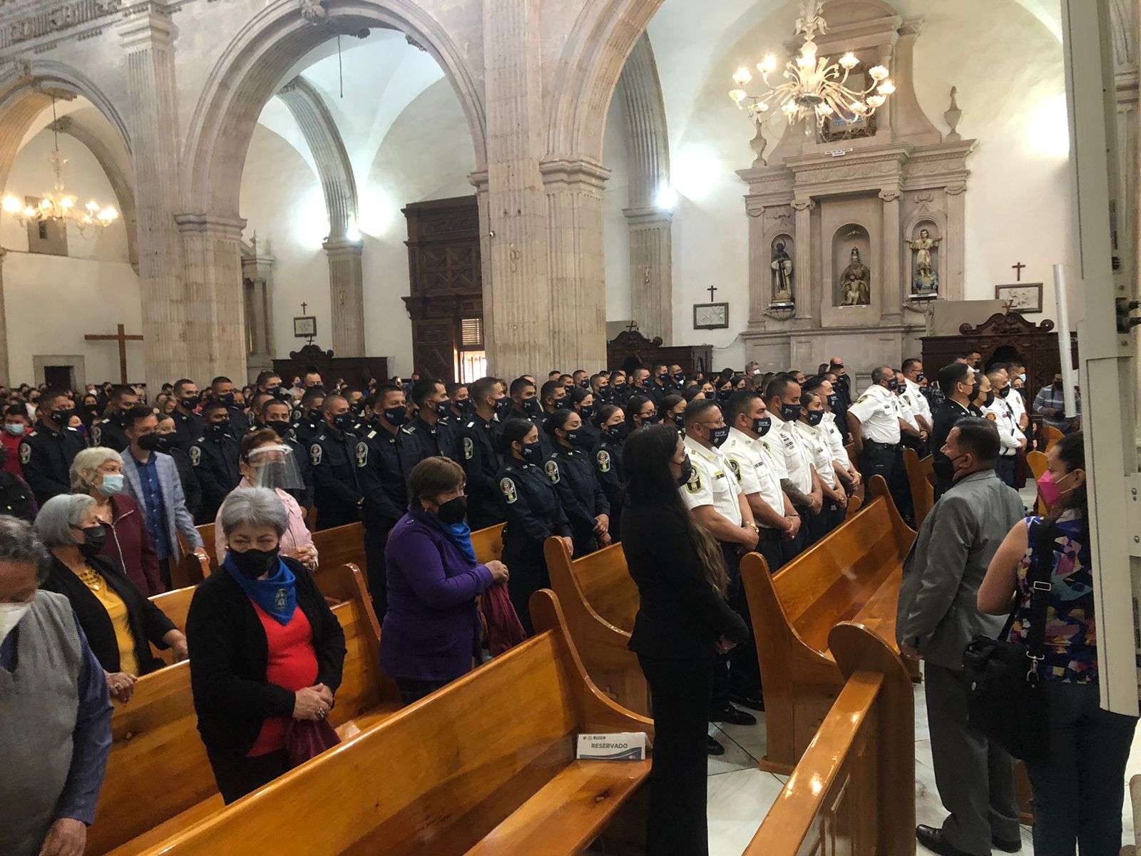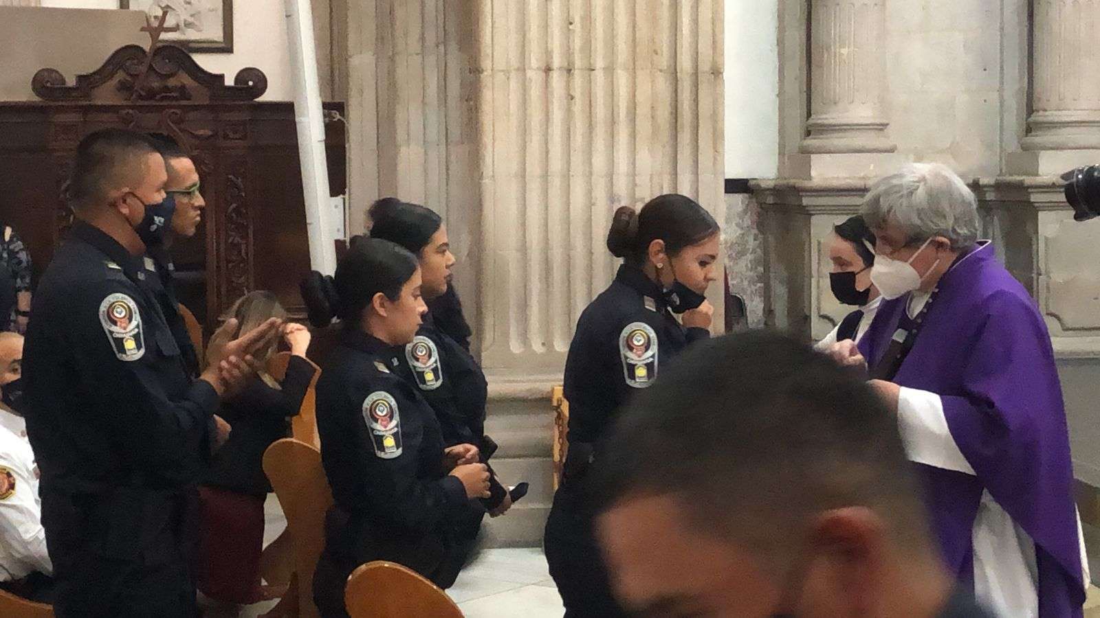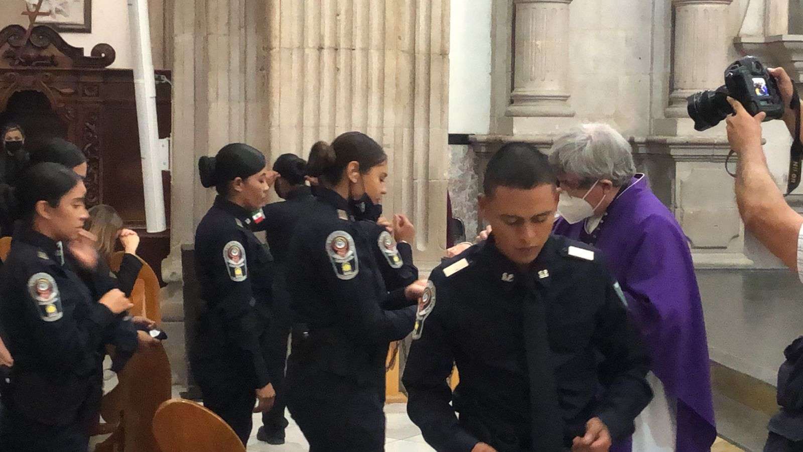 La misa dio inicio a las 8 am y fue oficiada por el sacerdote Raymundo López, donde asistieron familiares, amigos y conocidos de los nuevos policías se dieron cita para conmemorar la ceremonia cristiana.