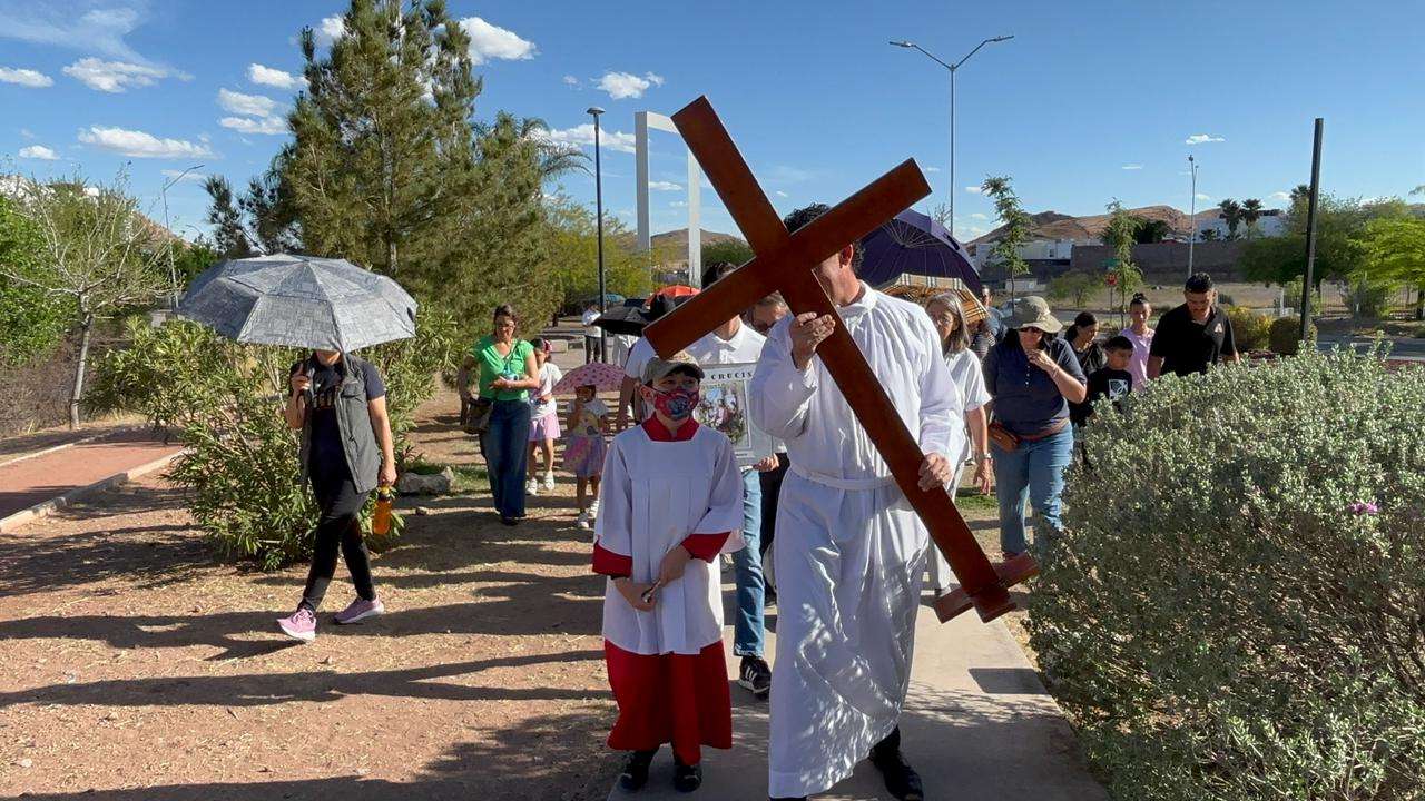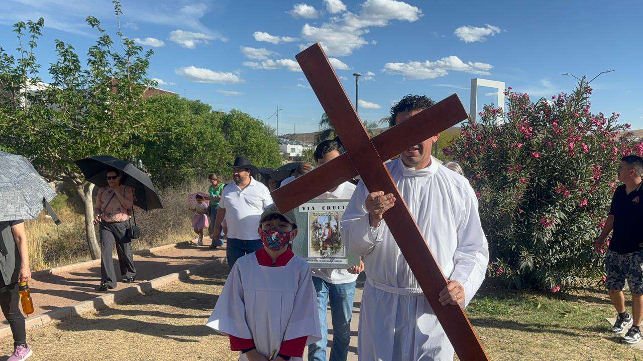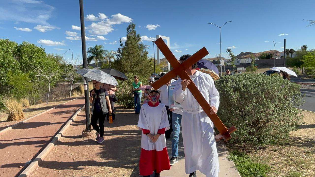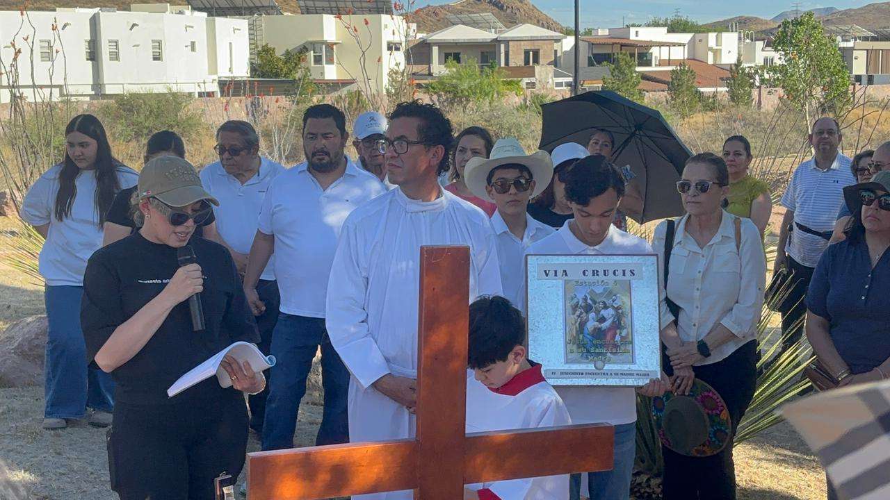 Chihuahua.- Bajo la guía del Diácono Giovanni Guzmán, vecinos de diversos fraccionamientos aledaños a la Misión Padre Pío realizaron este Viernes Santo un acompañamiento espiritual en la Pasión y Muerte de Jesús.