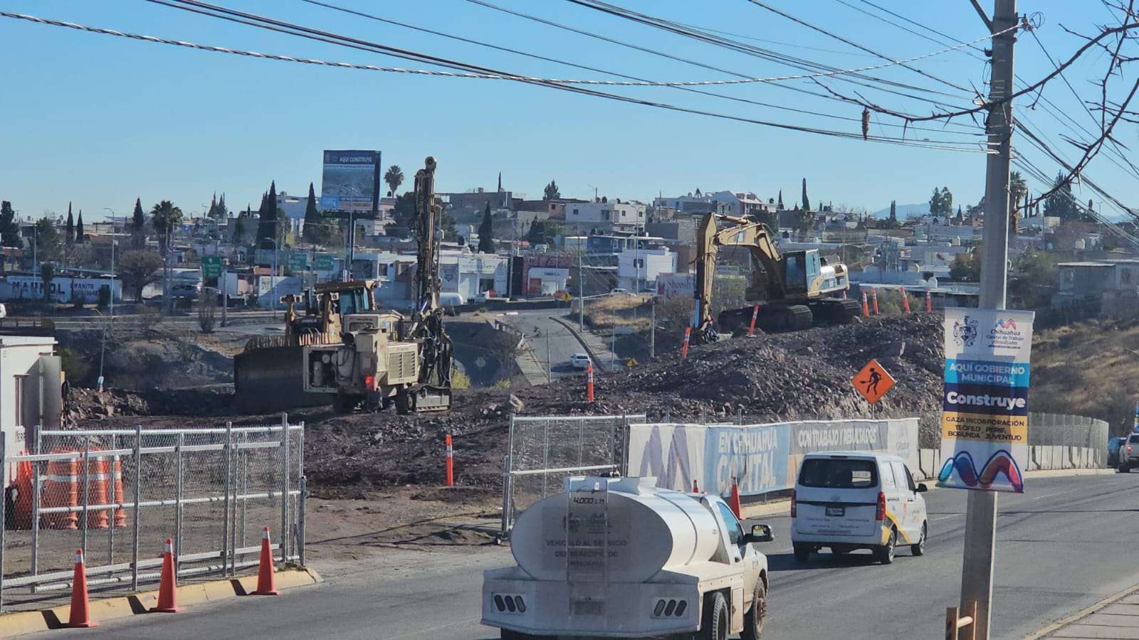 Por último, el puente con tirantes que se construye sobre la prolongación Teófilo Borunda hacia el Periférico de la Juventud presenta un avance más lento, probablemente debido a la dificultad del terreno, que es rocoso. Actualmente, se encuentra maquinaria pesada trabajando para preparar el terreno y construir las columnas del puente.