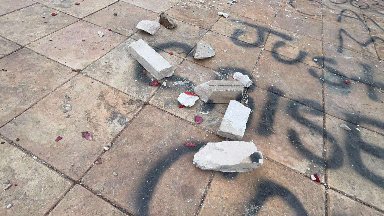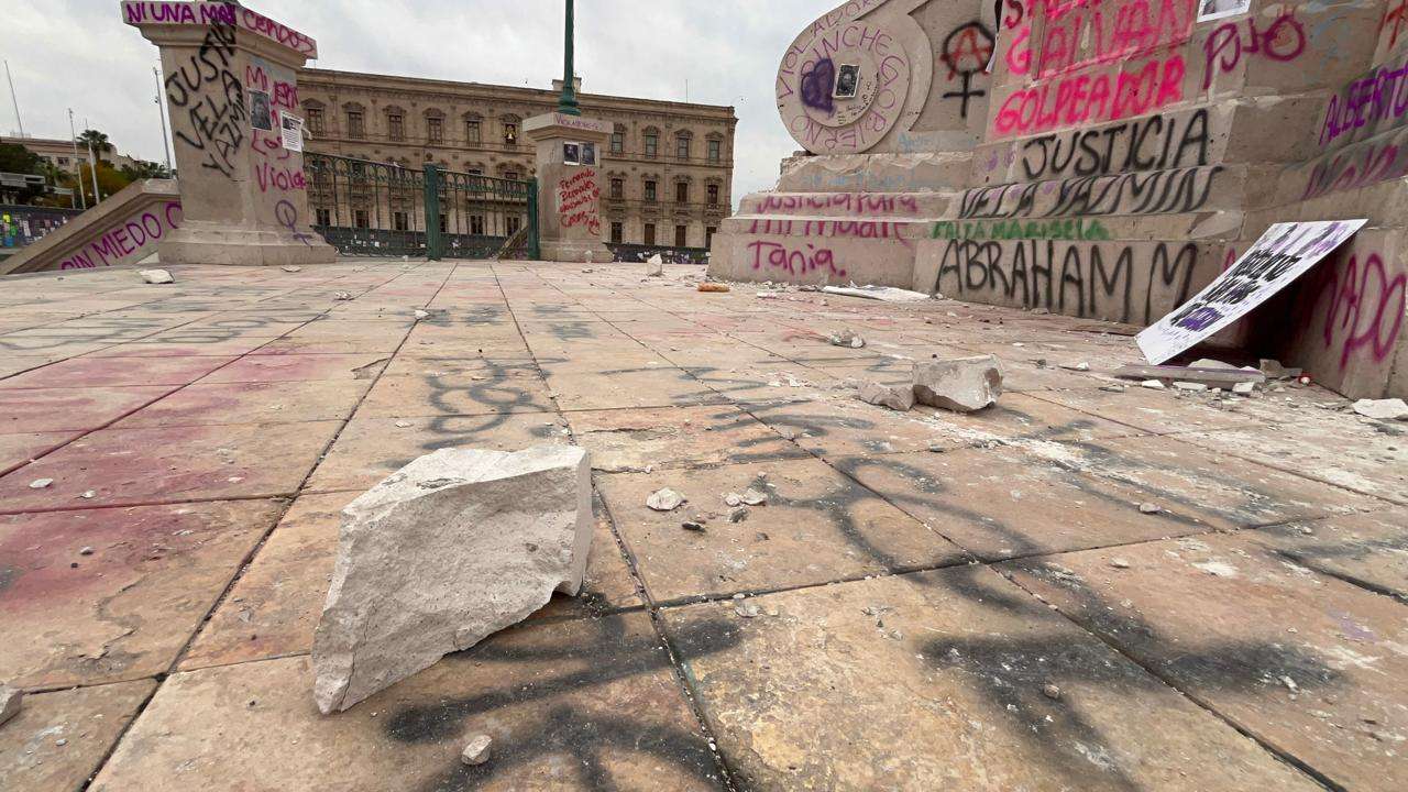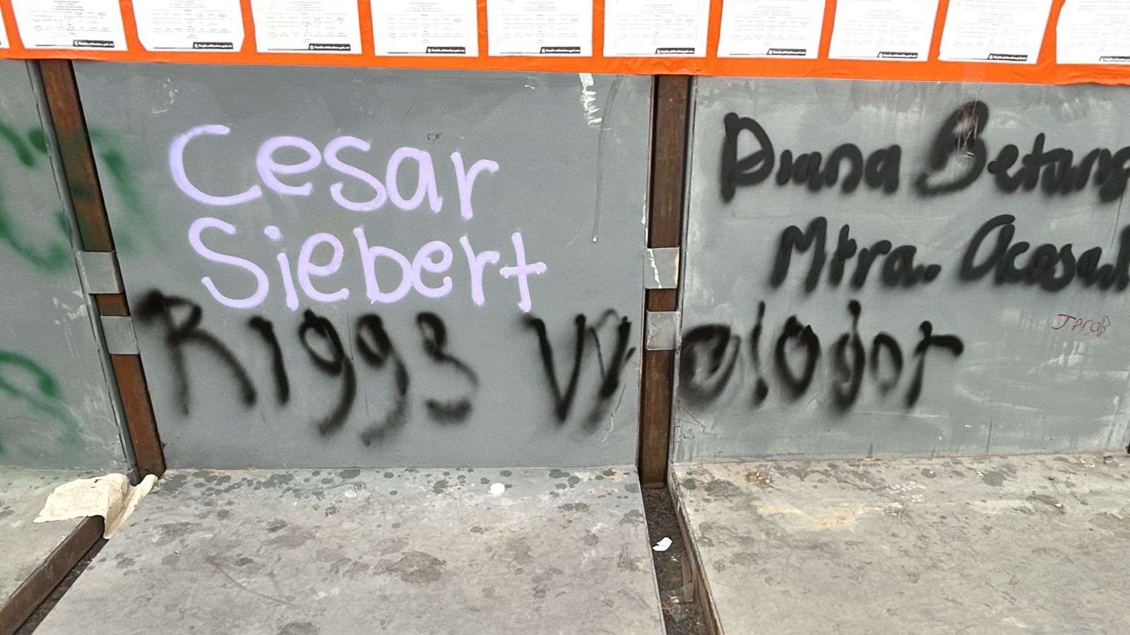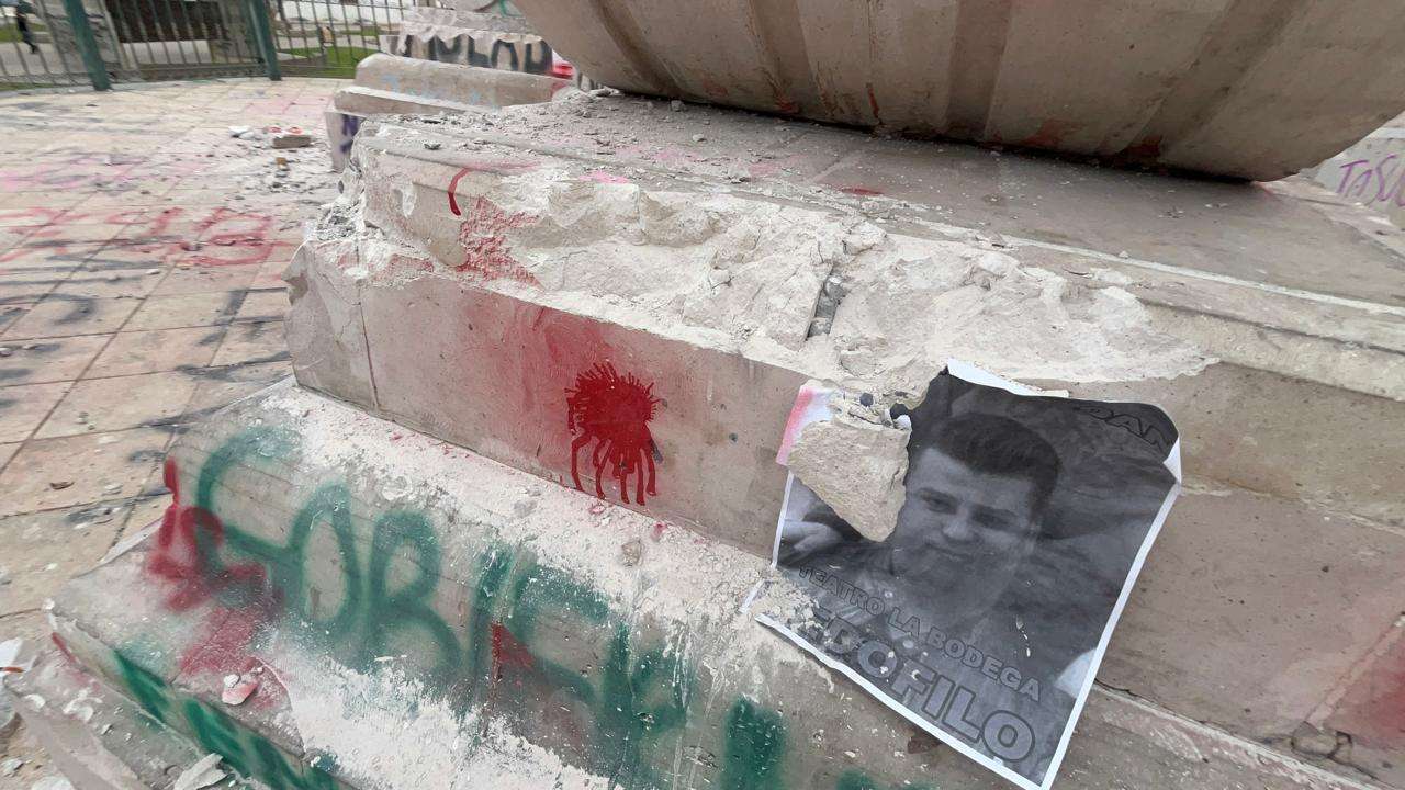 Los muros de acero lucen cubiertos con las huellas de la protesta, consignas en aerosol, nombres de víctimas y reclamos de justicia que fueron plasmados durante la tarde de ayer.