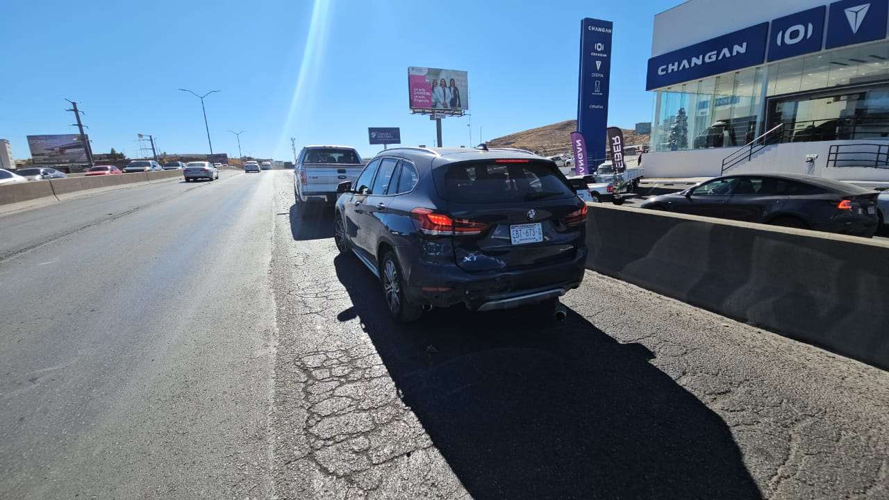 El percance ocurrió en la zona de entrada y salida previa al puente que cruza la Vía Sicilia, cuando la agente no se percató de una camioneta BMW X1 que se encontraba detenida debido a la carga vehicular, lo que provocó un fuerte choque.