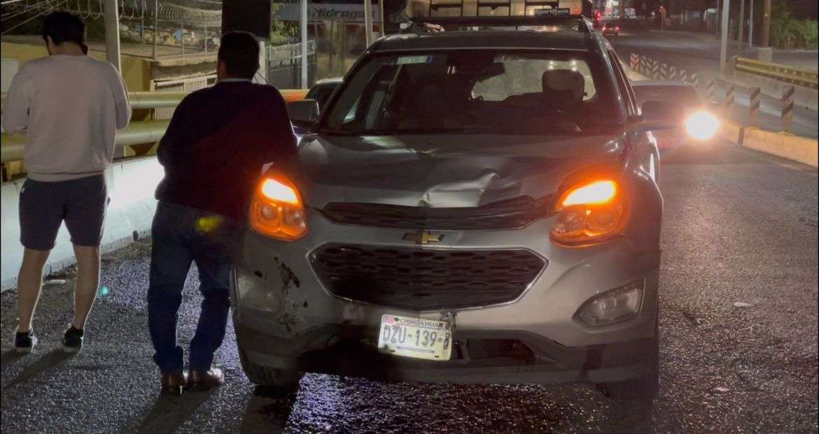 Chihuahua.- Un conductor en estado de ebriedad provocó un choque en la avenida Juárez, a la altura del puente que conecta con el Lombardo Toledano, donde el tráfico se encontraba detenido.