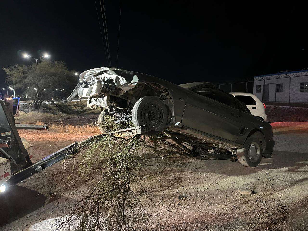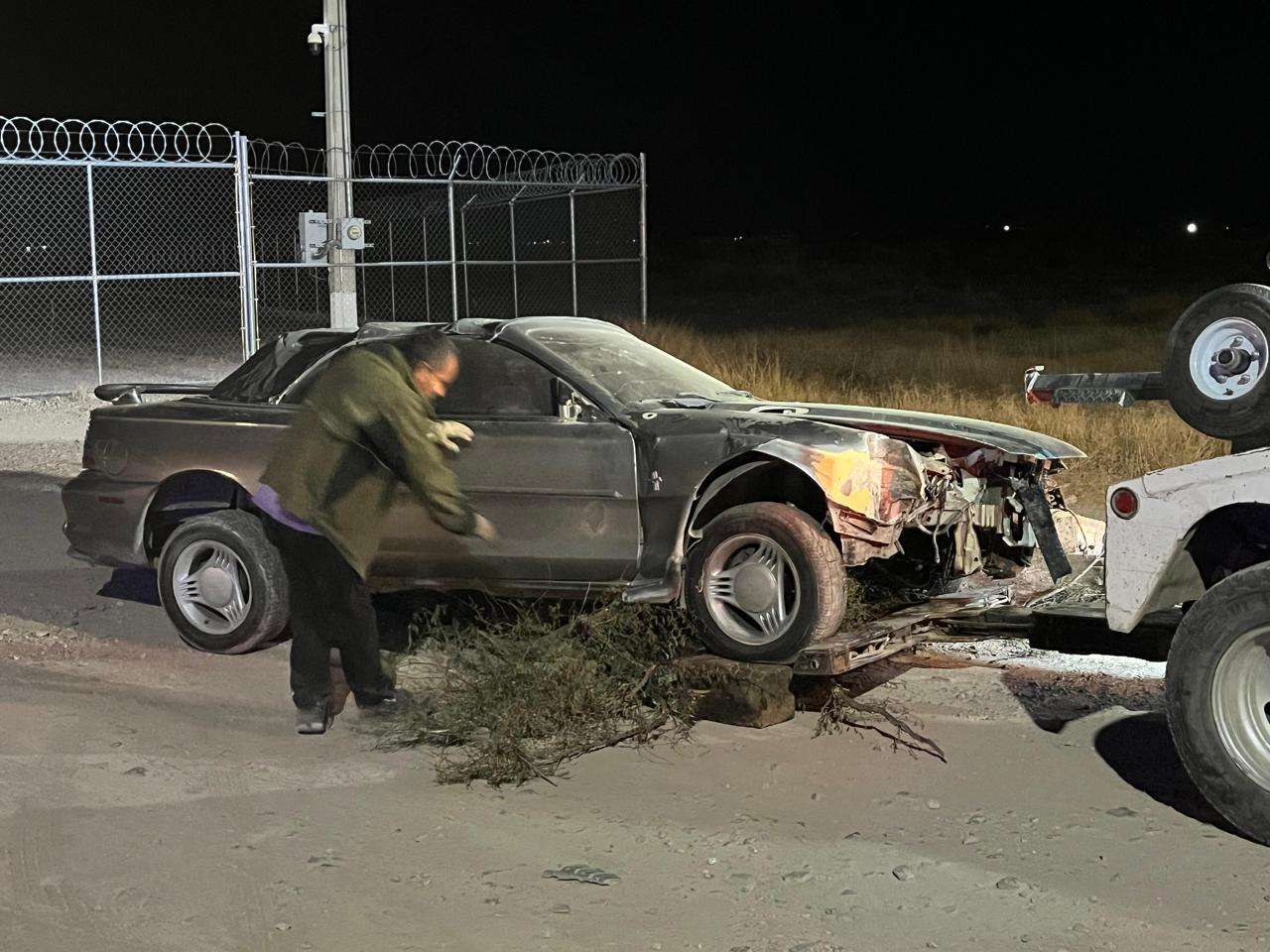 Cerca de la puerta Chihuahua perdió el control del volante y luego de salir del camino derribó al menos dos huizaches.