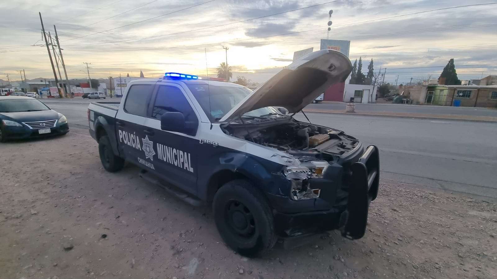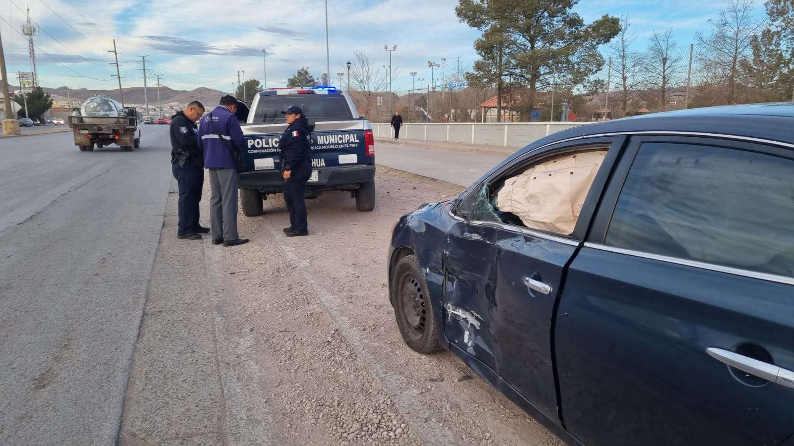 El accidente ocurrió cuando, aparentemente, el conductor del Nissan Sentra cortó la circulación a la patrulla al intentar incorporarse a la avenida, lo que provocó la colisión.
