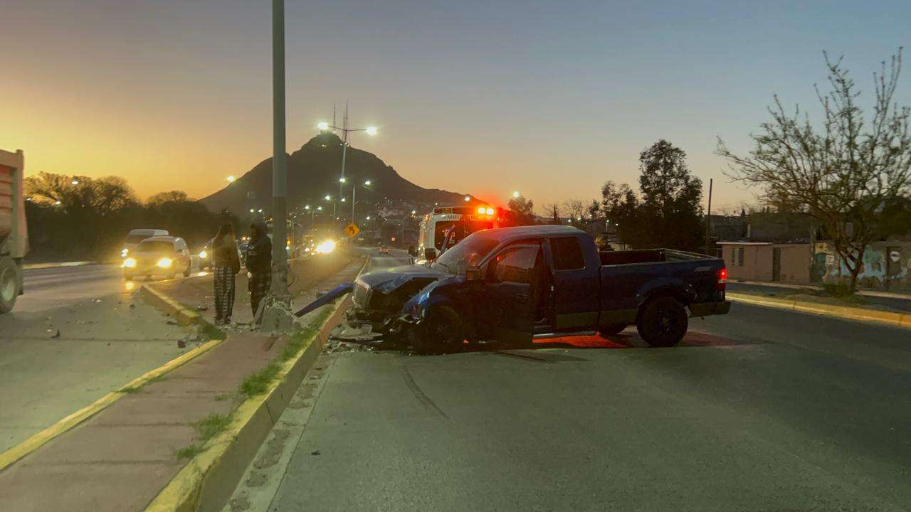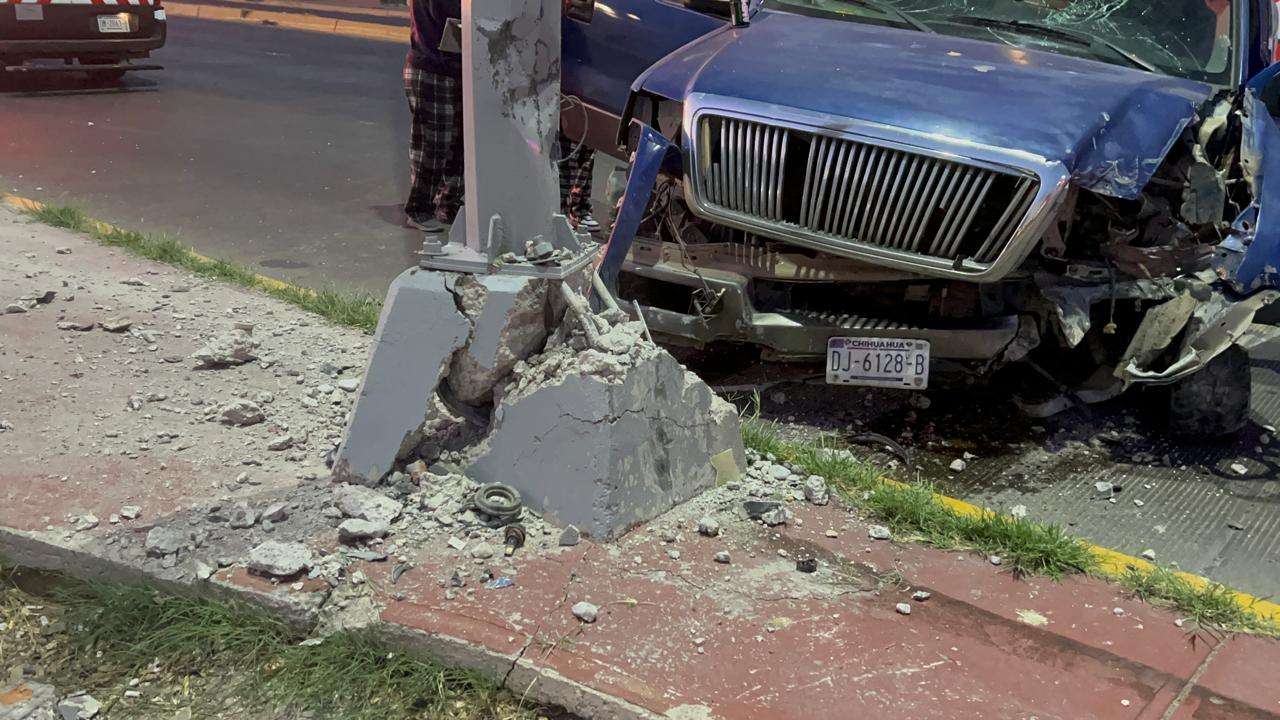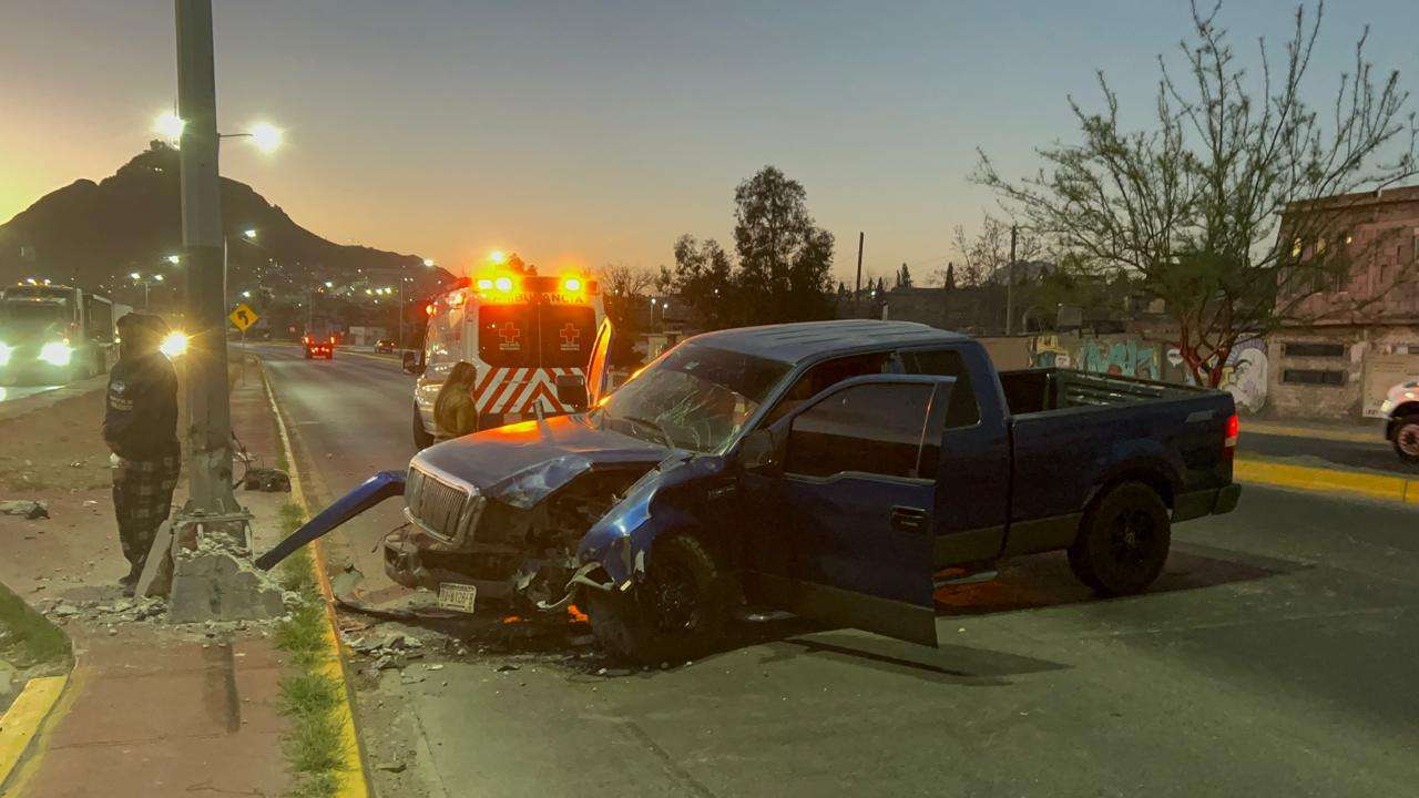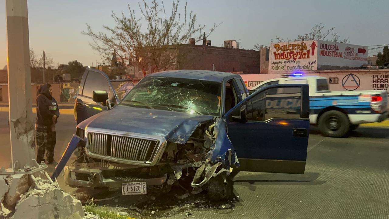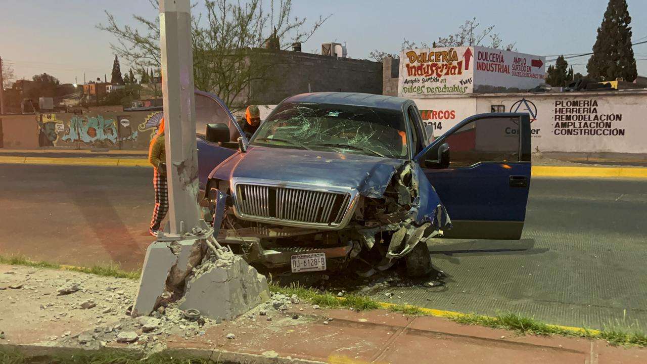 Dicho percance ocurrió sobre la vialidad Sacramento a la altura de la calle Yucatán, en la colonia Industrial, donde el conductor de una pickup Ford Lobo, de color azul, cabina y media perdió el control de la unidad con la cual se impactó contra la base de una luminaria.