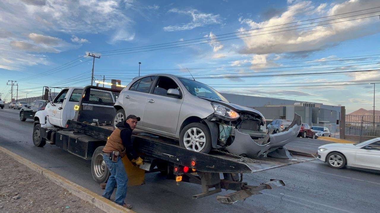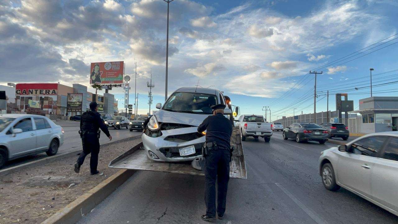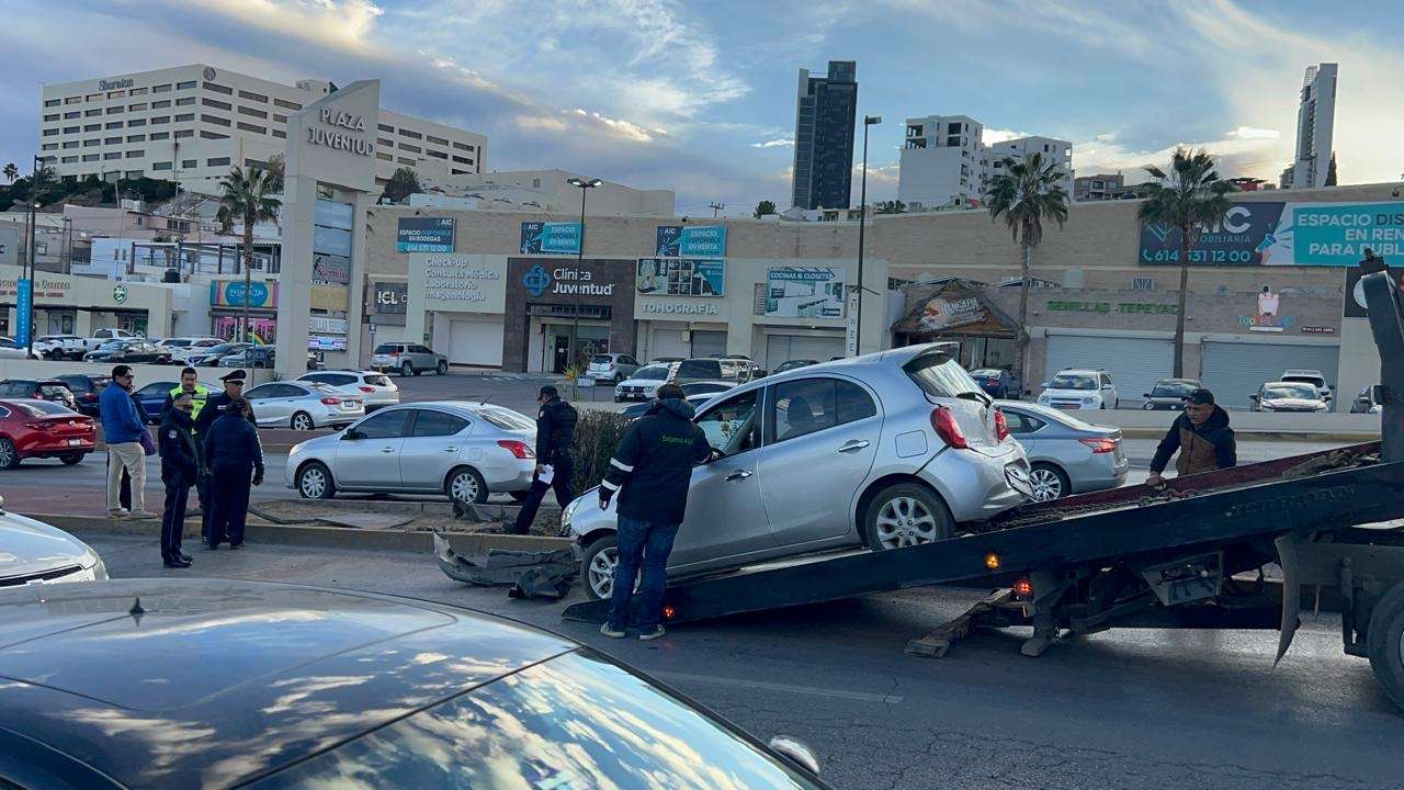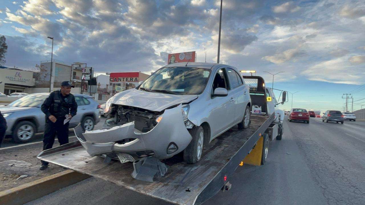 Chihuahua.- Sólo daños materiales se registraron en un accidente ocurrido sobre el Periférico la Juventud, hecho que provocó un grave caos vehicular.