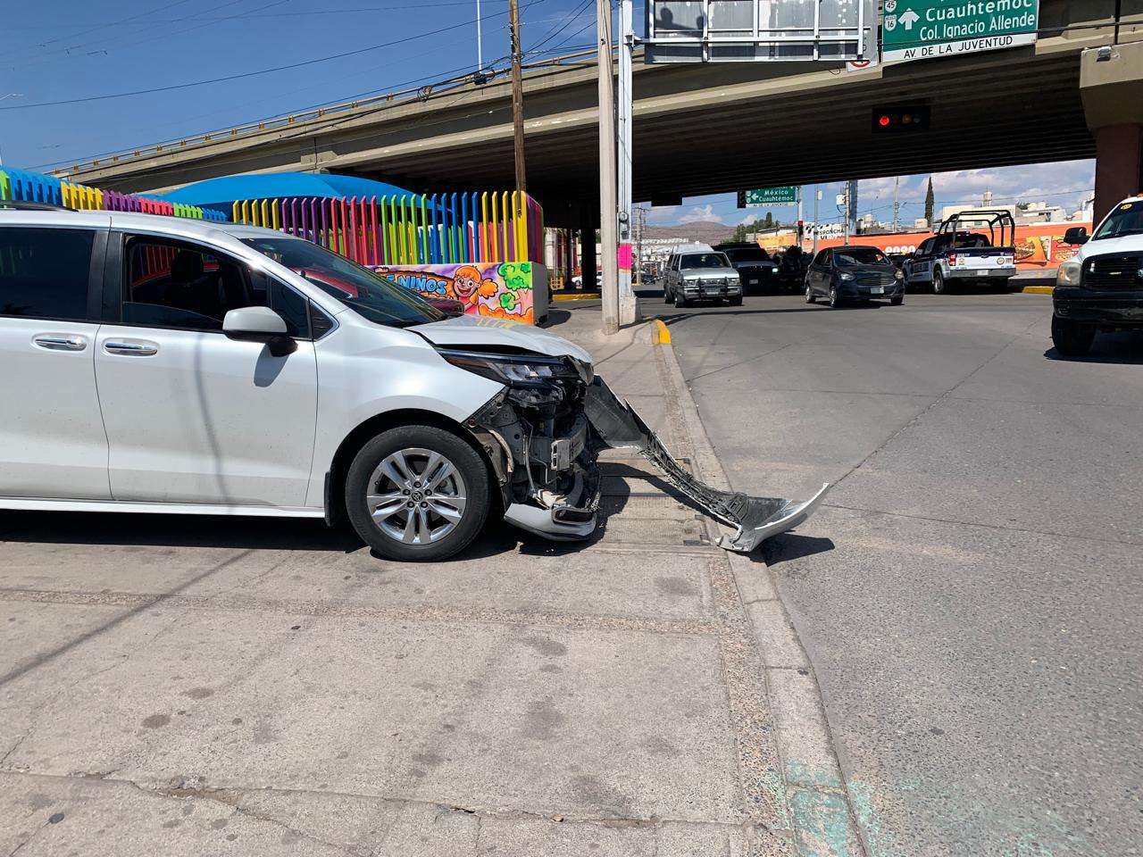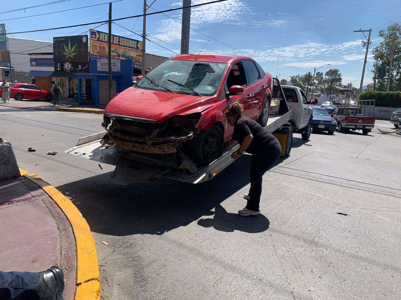 Chihuahua.- Una persona de la tercera edad resultó lesionada tras un aparatoso choque ocurrido en el lateral del periférico de la Juventud, a la altura del cruce con la calle Egipto.