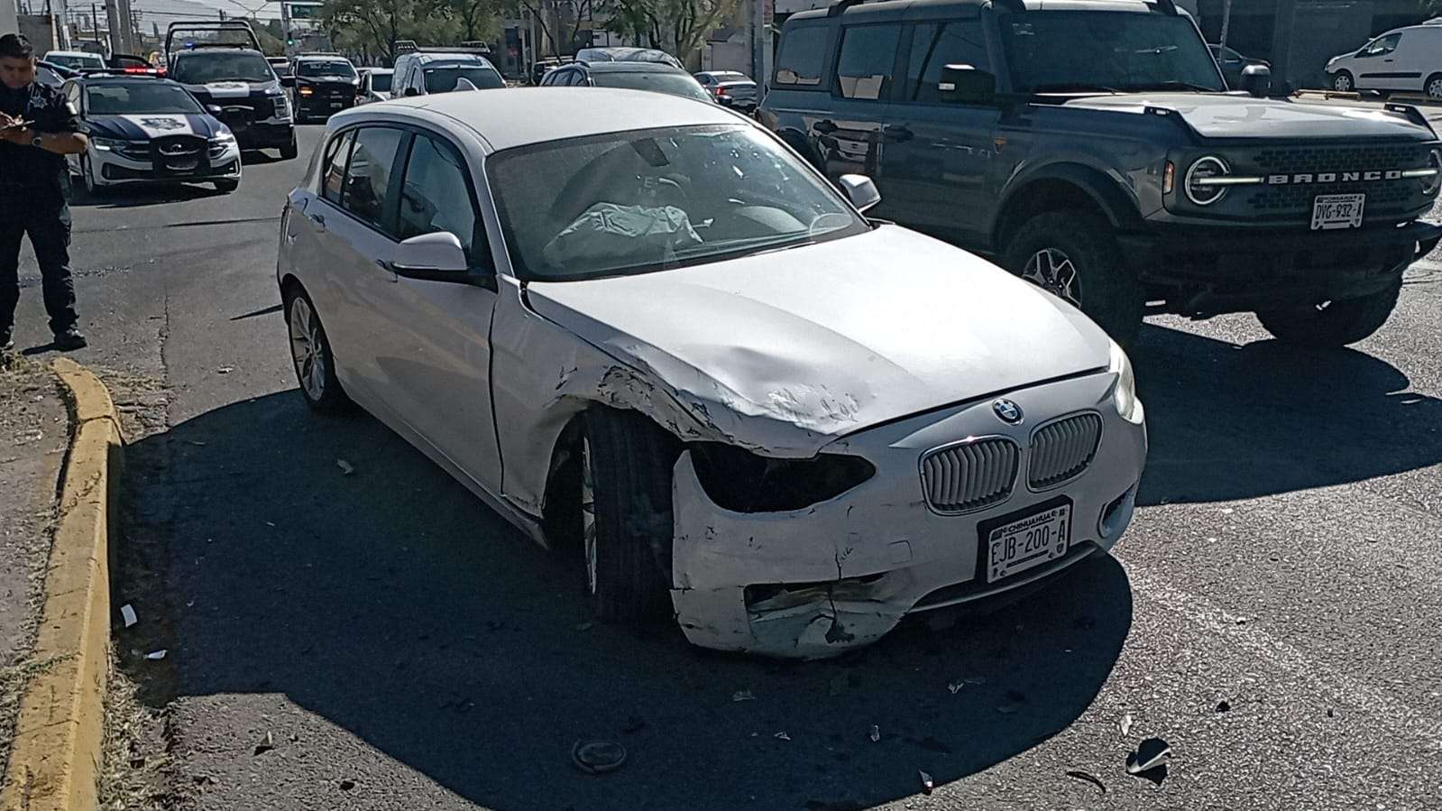 El incidente ocurrió cuando el conductor de un vehículo BMW 118, que circulaba de sur a norte sobre la calle Ecuador, no respetó el paso del conductor de un Nissan Sentra al llegar a la intersección con la Avenida Francisco Villa.