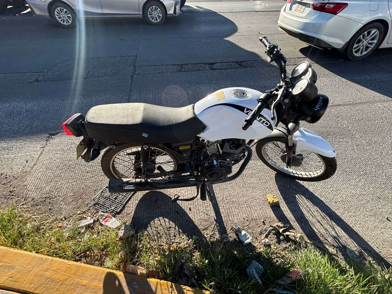 Chihuahua, Chih.- Un joven de 19 años que circulaba a bordo de una motocicleta en sentido de sur a norte chocó por alcance contra un vehículo Nissan March en el Periférico de la Juventud, a la altura del cruce con la calle Nirvana, en la colonia Ignacio Rodríguez, lo que dejó cuantiosos daños materiales en ambas unidades.