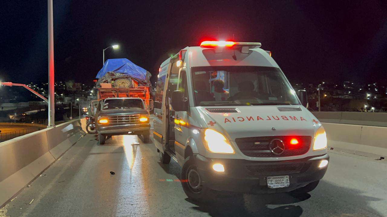 Ocurrió en sentido de sur a norte, sobre el periférico de la Juventud y bulevar Ortiz Mena, en la parte superior de dicho puente por donde circulaba la troca a baja velocidad.