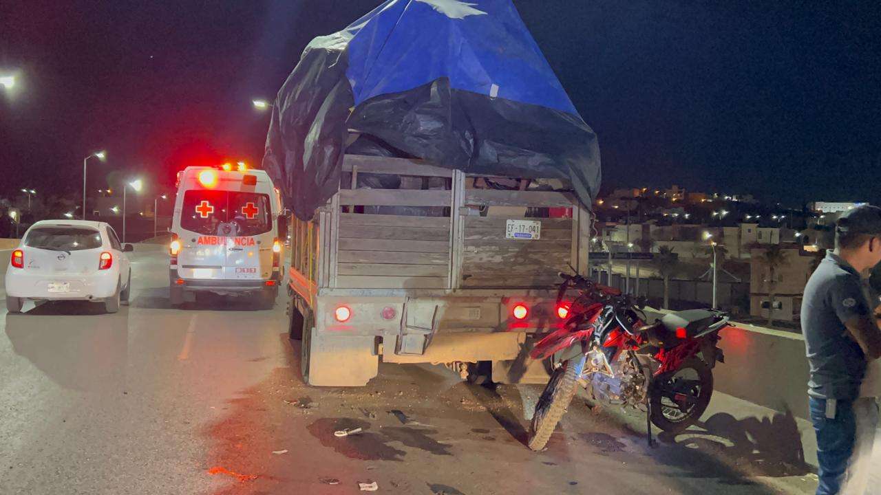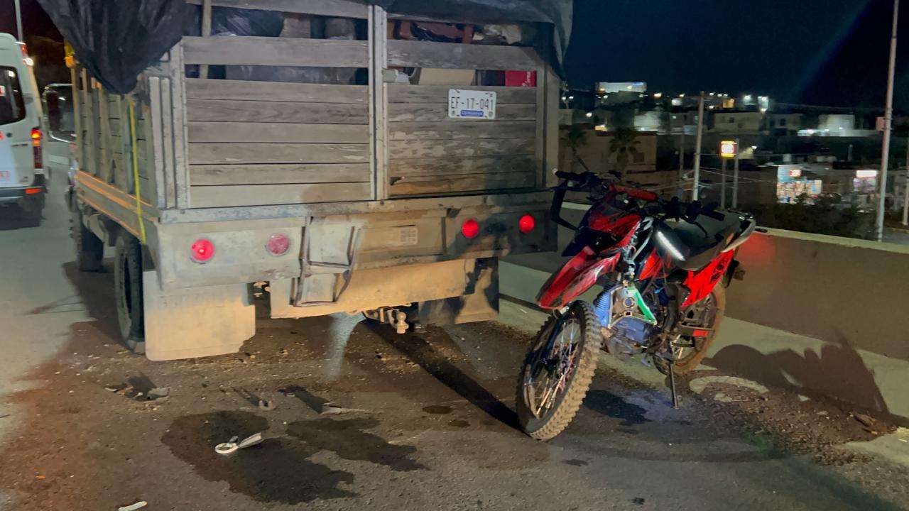 Chihuahua.- El conductor de una motocicleta tipo cross se impactó en la parte trasera de una troca de tonelada cargada con muebles.