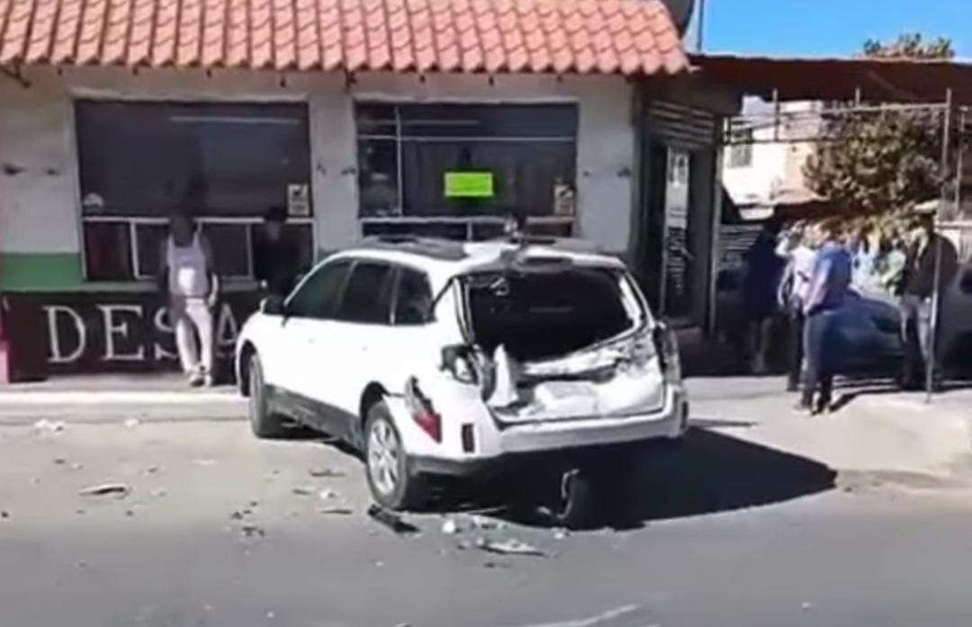 El percance ocurrió sobre la avenida Nueva España, en sentido de norte a sur, cuando al llegar a la calle 15, la conductora del Versa circulaba presuntamente a exceso de velocidad y no logró frenar a tiempo, impactando primero a la camioneta y provocando que ésta alcanzara al taxi del sitio de Desarrollo Industrial.