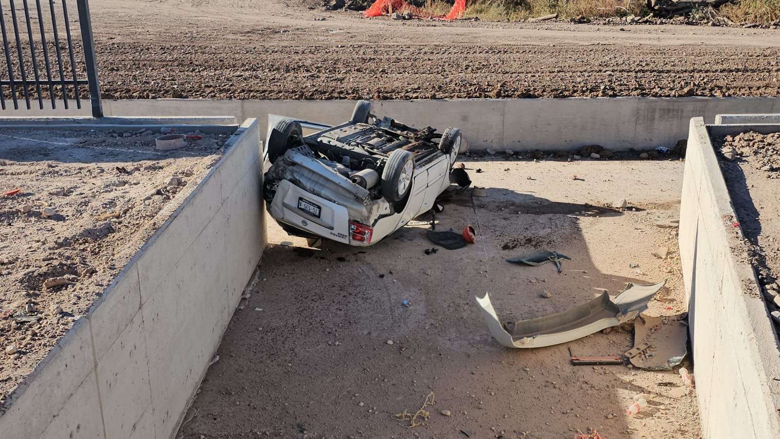 De acuerdo con los primeros reportes, el automovilista se salió del camino y cayó a un canal de desagüe, donde quedó con daños de consideración.