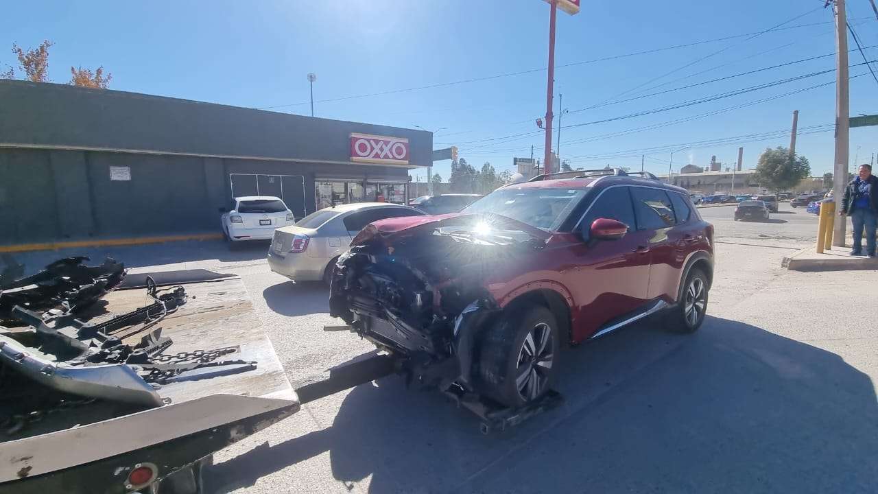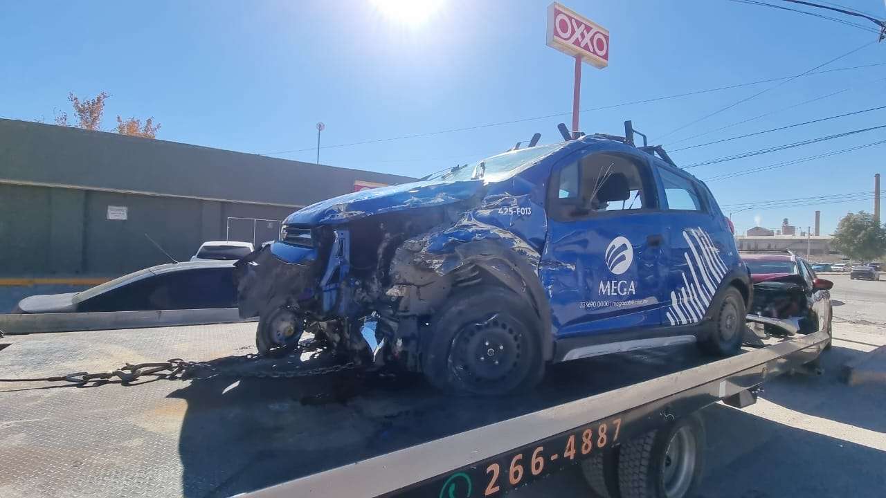 Chihuahua.- En el cruce de la avenida Juan de la Barrera y la avenida Heroico Colegio Militar se registró un fuerte choque con volcadura que involucró a una camioneta Nissan X-Trail y un vehículo Chevrolet Beat de la empresa Megacable.